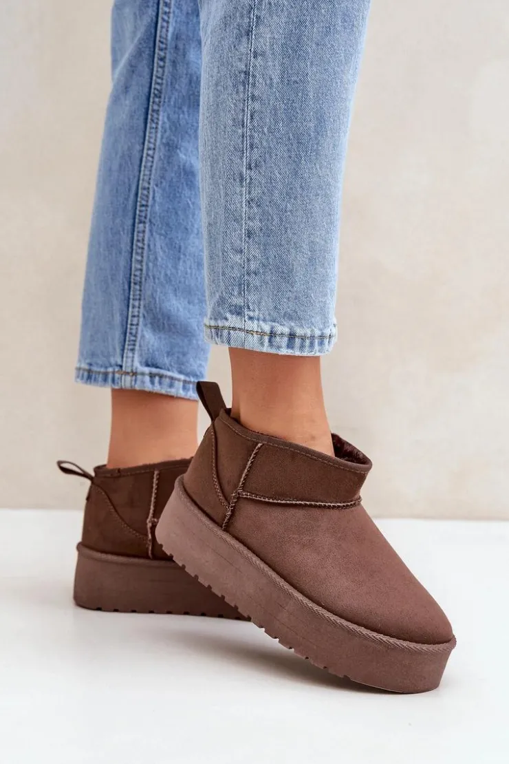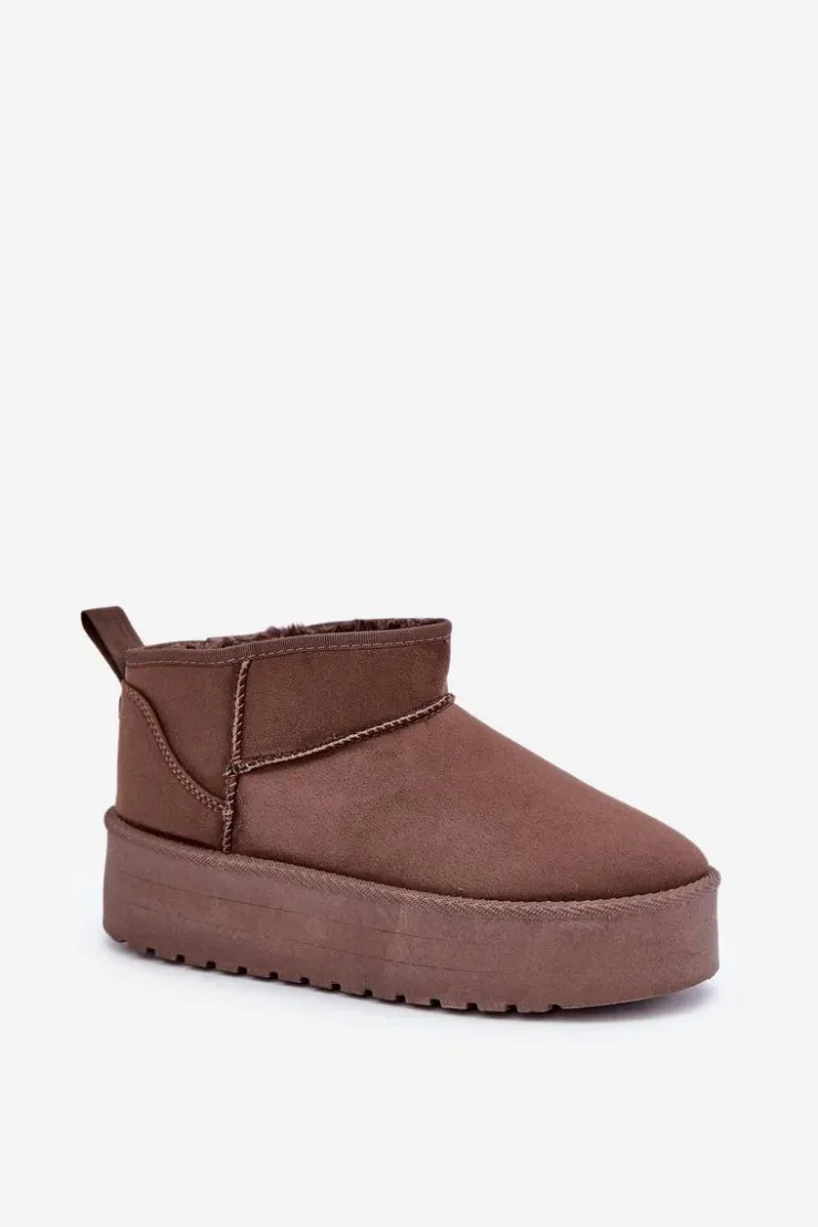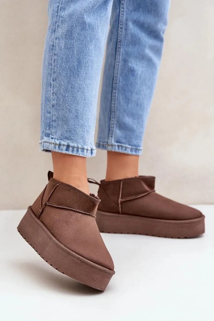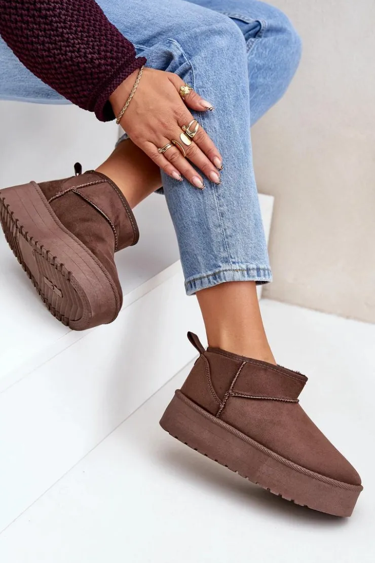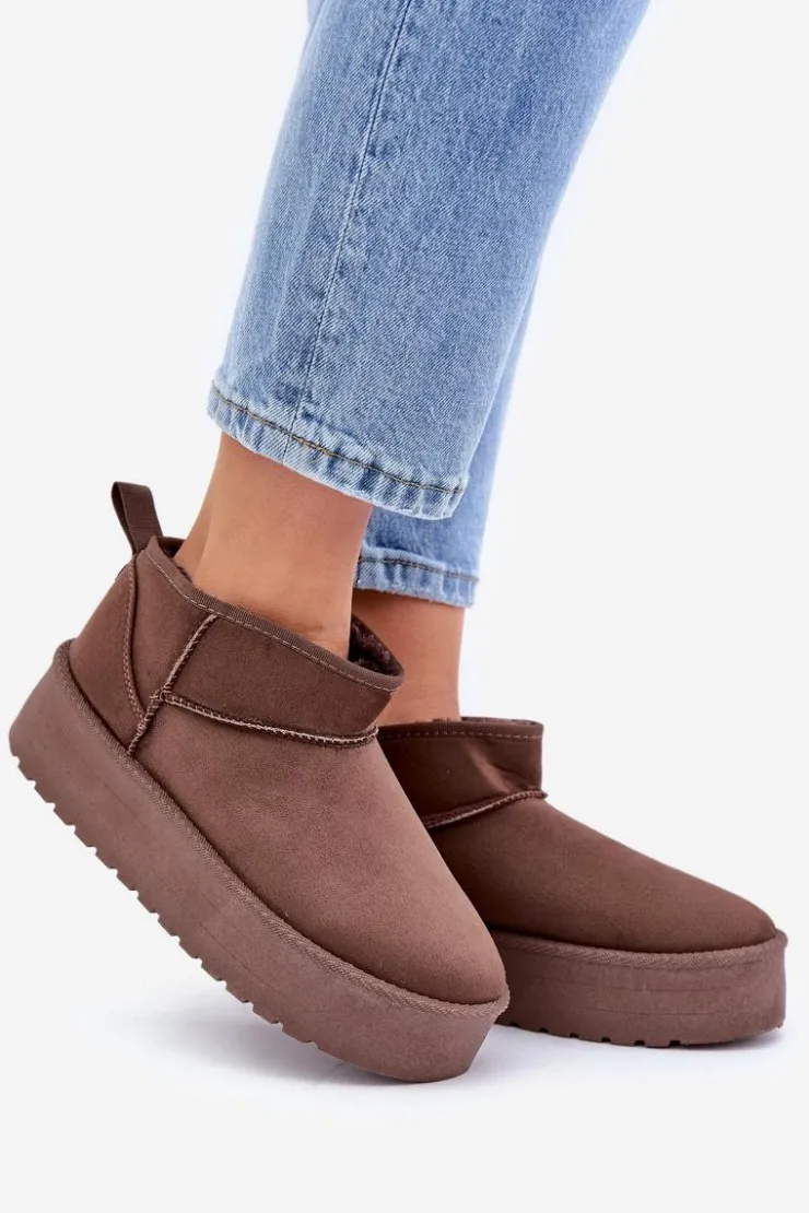 Klasyczne śniegowce idealnie sprawdzą się podczas chłodnych dni. Wykonane z eko zamszu. Osadzone na platformie, która doskonale odizoluje od zimnego podłoża. Wnętrze butów zostało ocieplone grubym futerkiem, co zapewni ciepło w mroźne dni. Ten klasyczny model dopasujesz do wielu stylizacji! Przy wyborze rozmiaru prosimy sugerować się tabelą rozmiarów.