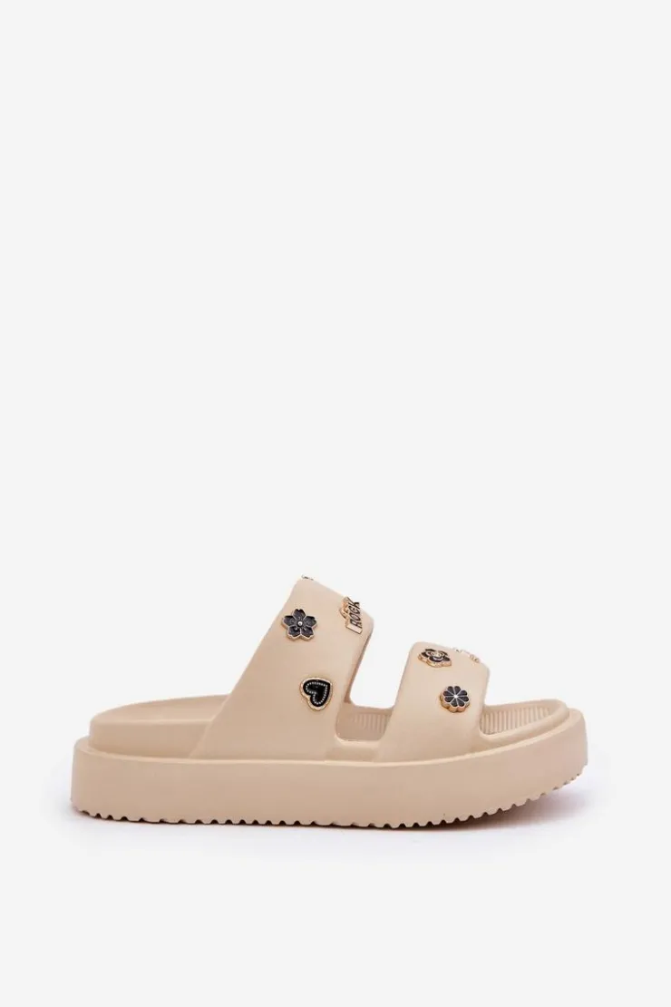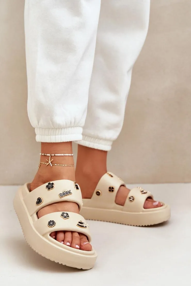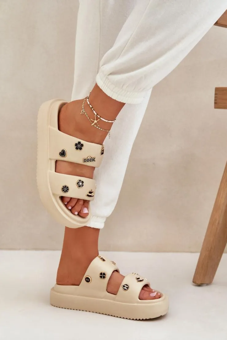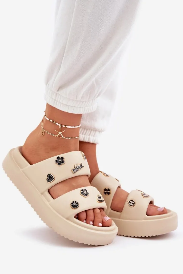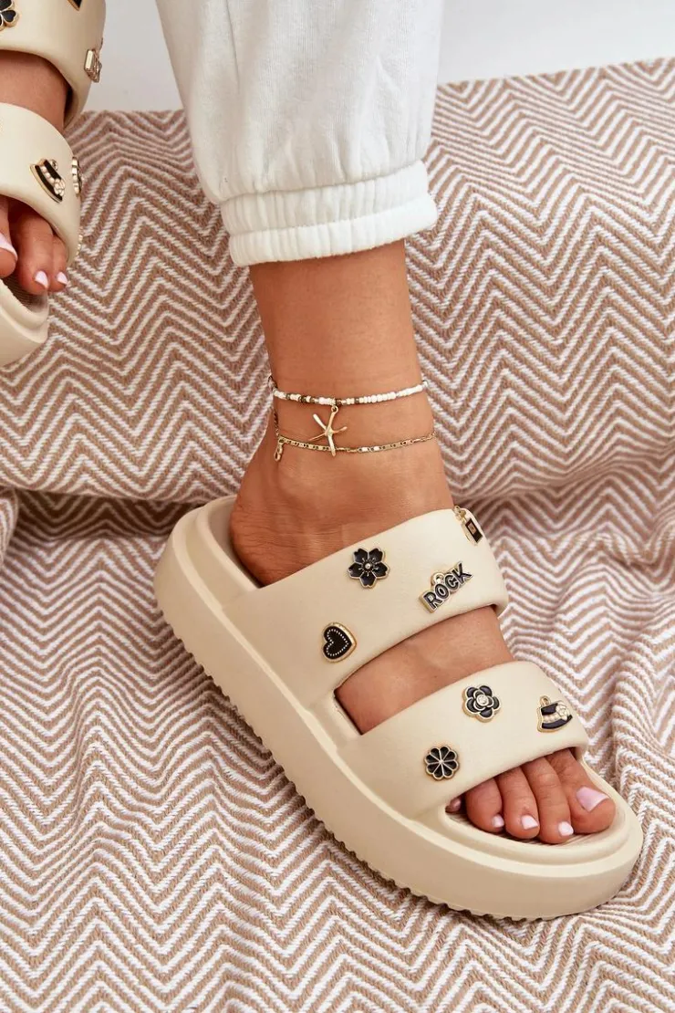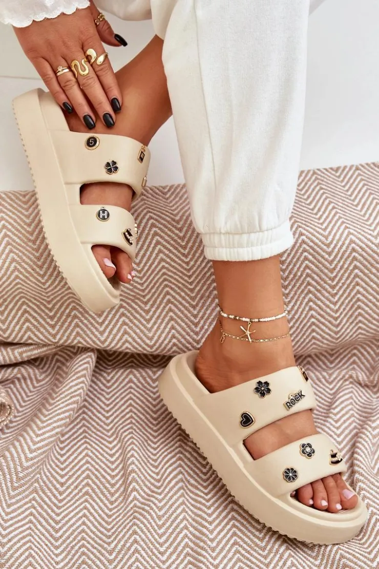 Damskie klapki z lekkiej pianki to stylowy wybór dla każdej kobiety. Platforma gwarantuje wygodę oraz stabilność. Klapki są ozdobione detalami, które przyciągają uwagę, doskonale pasując do letnich zestawień, łącząc komfort z modnym stylem. Przy wyborze rozmiaru prosimy sugerować się tabelą rozmiarów.