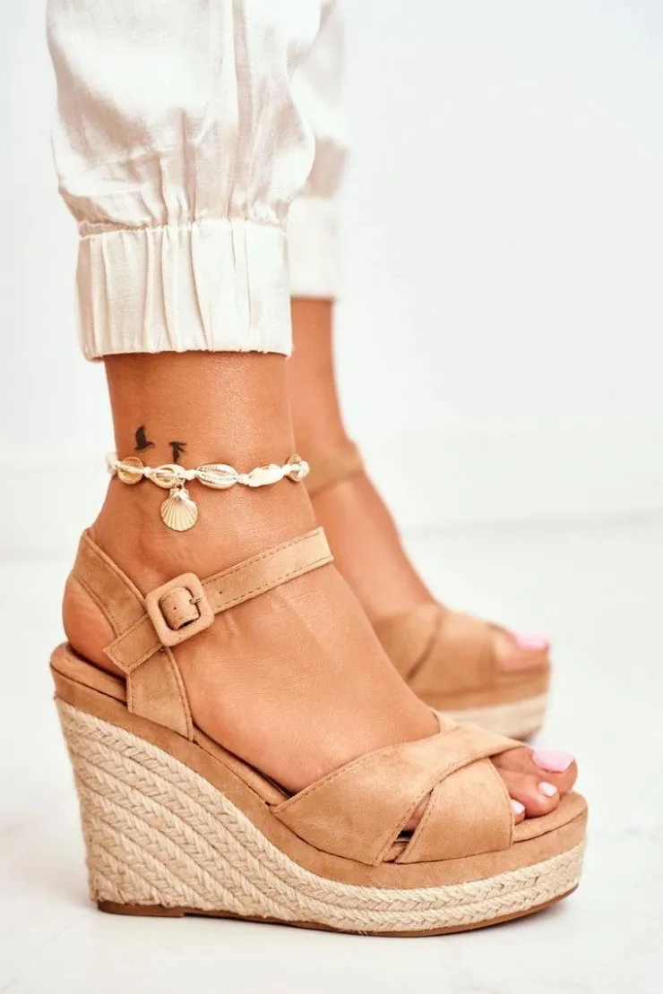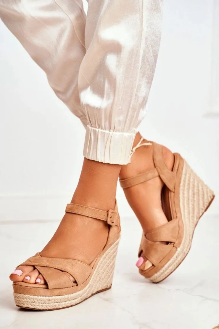 Discount Boto Sandałki Damskie Na Koturnie Beżowe Sevilla