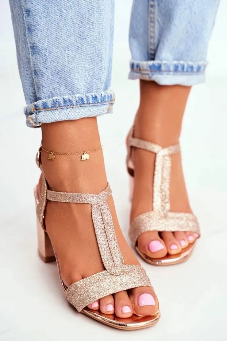 Discount Boto Sandały Damskie Na Słupku Brokatowe Champagne Perfecto