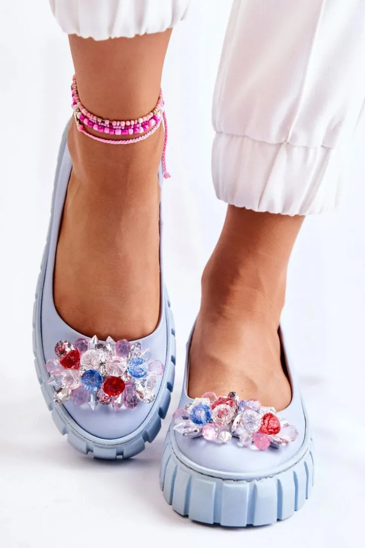 Discount Boto Skórzane Baleriny Na Platformie Z Kolorową Ozdobą Niebieskie Ladette