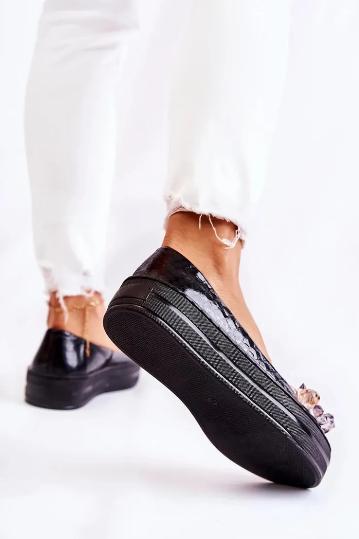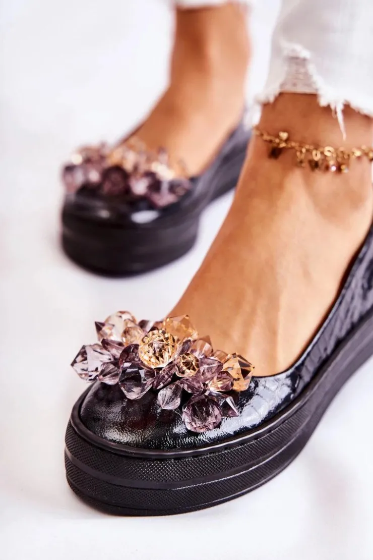 Damskie baleriny wykonane z naturalnej skóry z dbałością o każdy detal. O komfort zadba miękka, skórzana wkładka. Podeszwa wykonana z gumowego tworzywa, która dodatkowo jest antypoślizgowa. Z przodu elegancka ozdoba w postaci imitacji kryształków dodaje butom uroku. Nosek zaokrąglony. Baleriny dopełnią wiele Twoich stylizacji, dlatego powinnaś mieć je w swojej szafie! Przy wyborze rozmiaru prosimy sugerować się tabelą rozmiarów.