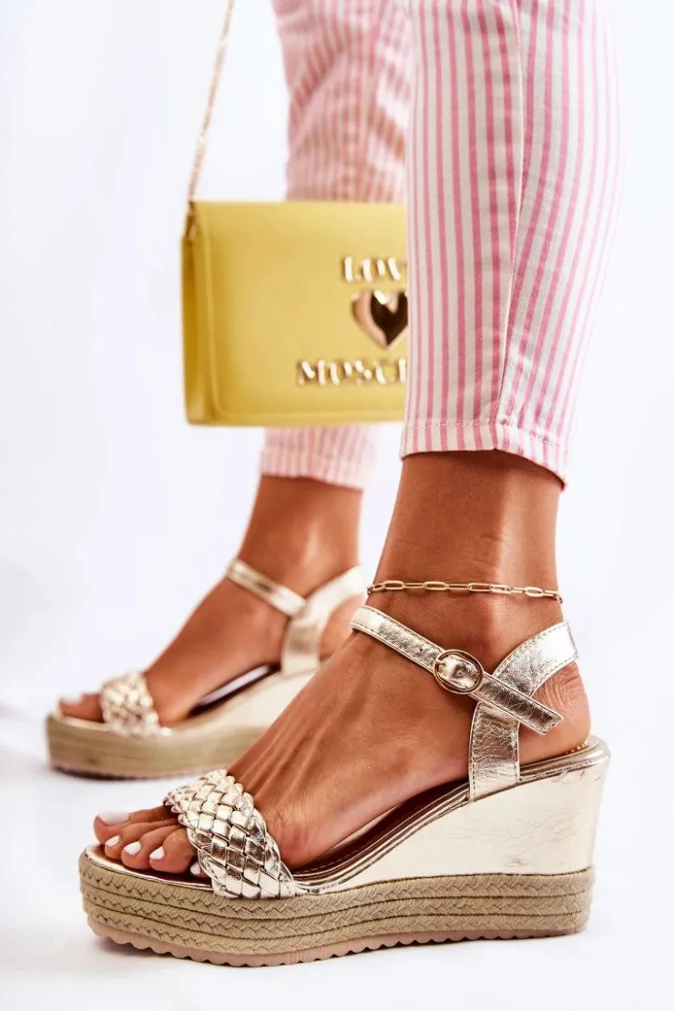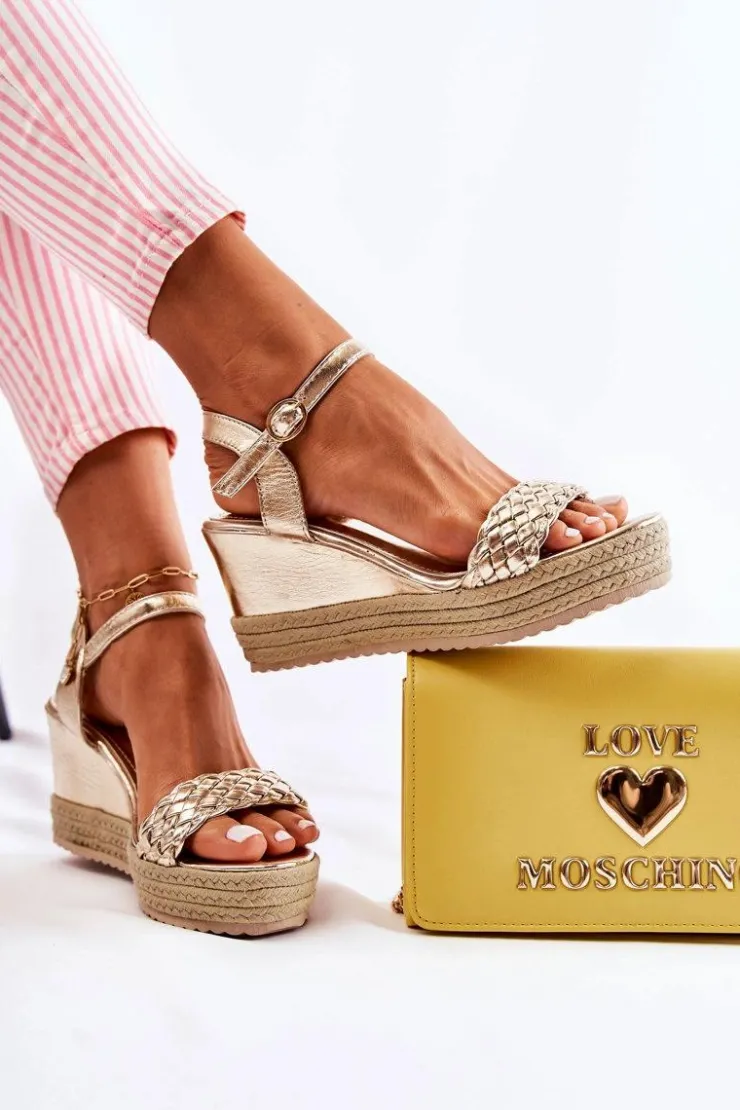 Discount Boto Skórzane Sandały Na Koturnie Złote Gabriela