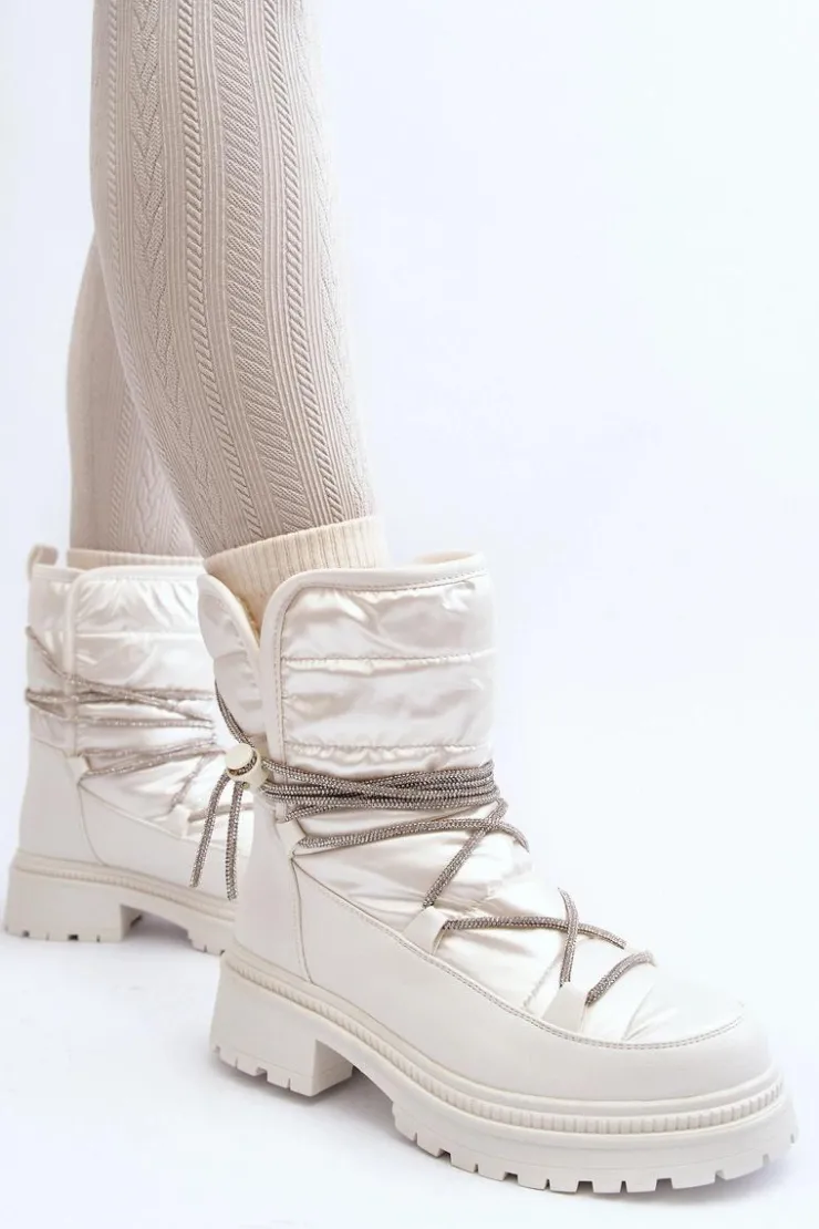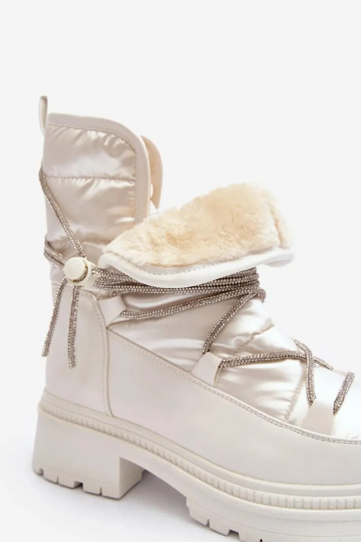 Śniegowce damskie wykonane z materiałów, które skutecznie chronią przed zimnem. Osadzone na grubej podeszwie i płaskim obcasie. Cholewka ozdobiona błyszczącym wiązaniem. Model wsuwany. Noski zaokrąglone. Środek ocieplony grubym futerkiem. Dodatkowo zapiętek jest usztywniony. Koniecznie powinnaś je mieć! Przy wyborze rozmiaru prosimy sugerować się tabelą rozmiarów.
