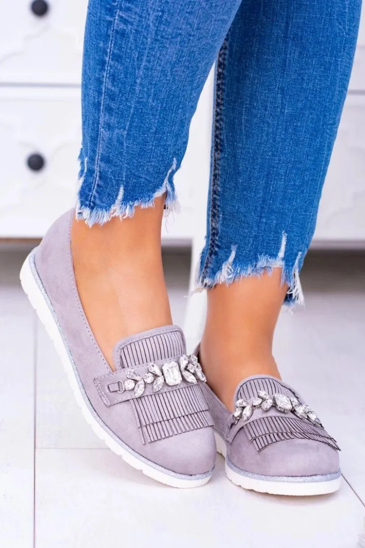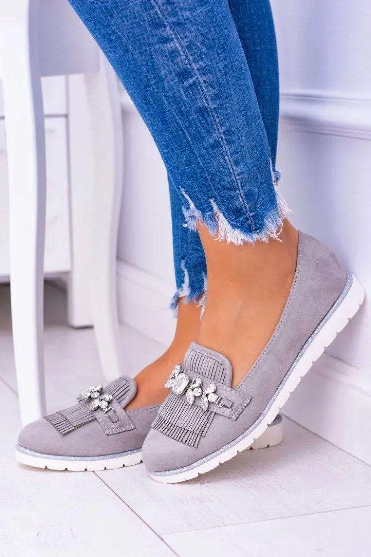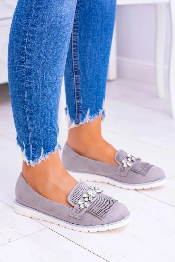 Discount Boto Szare Zamszowe Mokasyny z Kryształami Vivaro