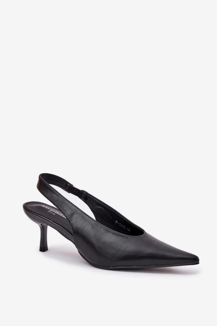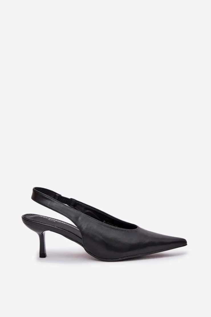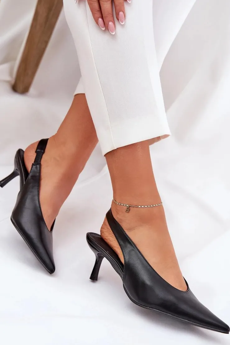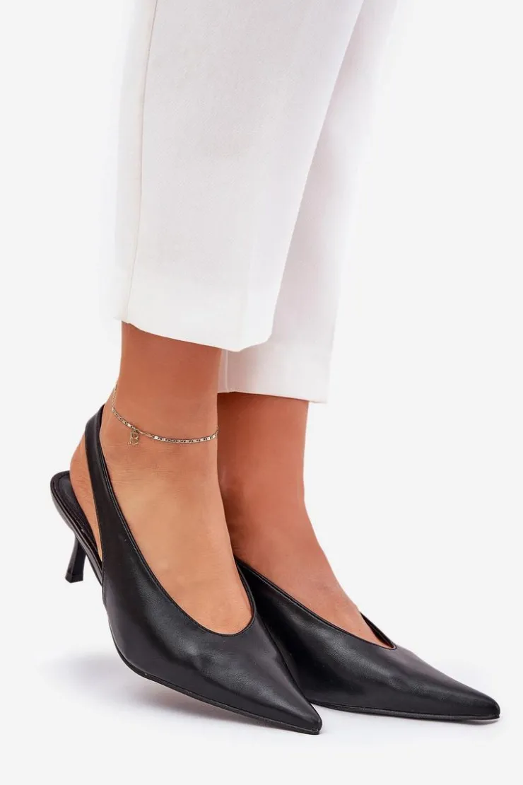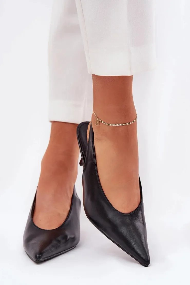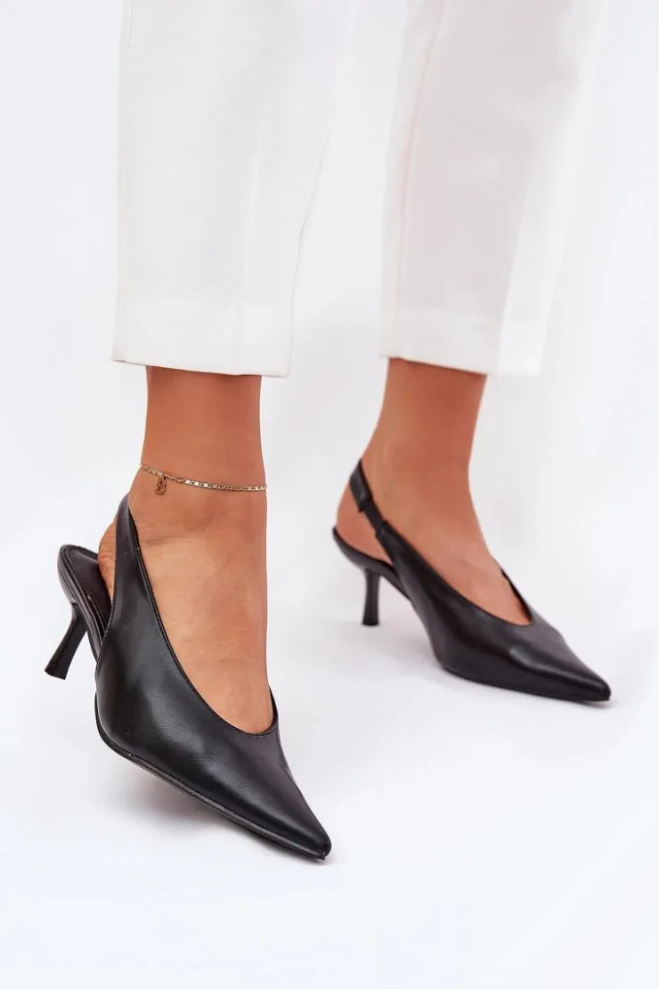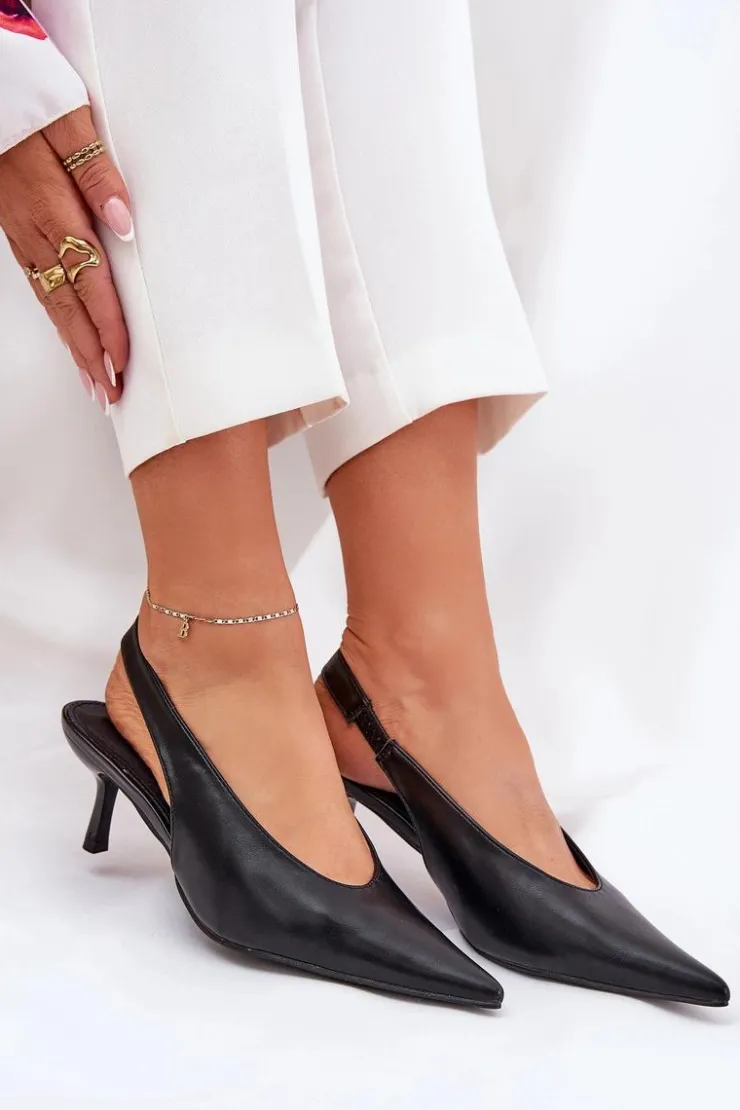 Szpilki wykonane z eko skóry stanowią doskonałą opcję na wyjątkowe wydarzenia i wieczorne spotkania. Ich klasyczne, spiczaste noski dodają elegancji i wizualnie wydłużają nogi. Pasek z gumką umieszczony z tyłu buta zapewnia lepsze dopasowanie do stopy, co przekłada się na wygodę użytkowania. Te szpilki są idealnym dodatkiem do eleganckich sukienek i spodni. Przy wyborze rozmiaru prosimy sugerować się tabelą rozmiarów.