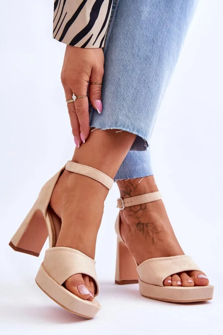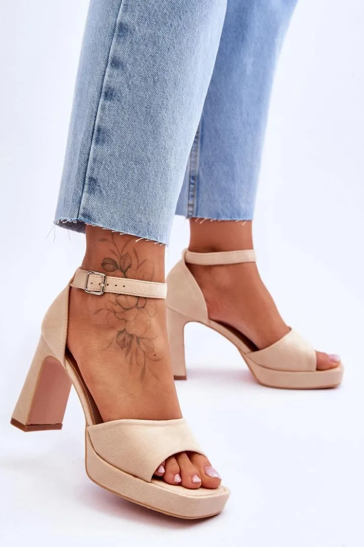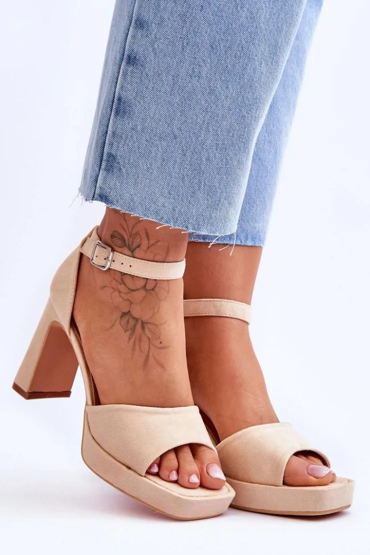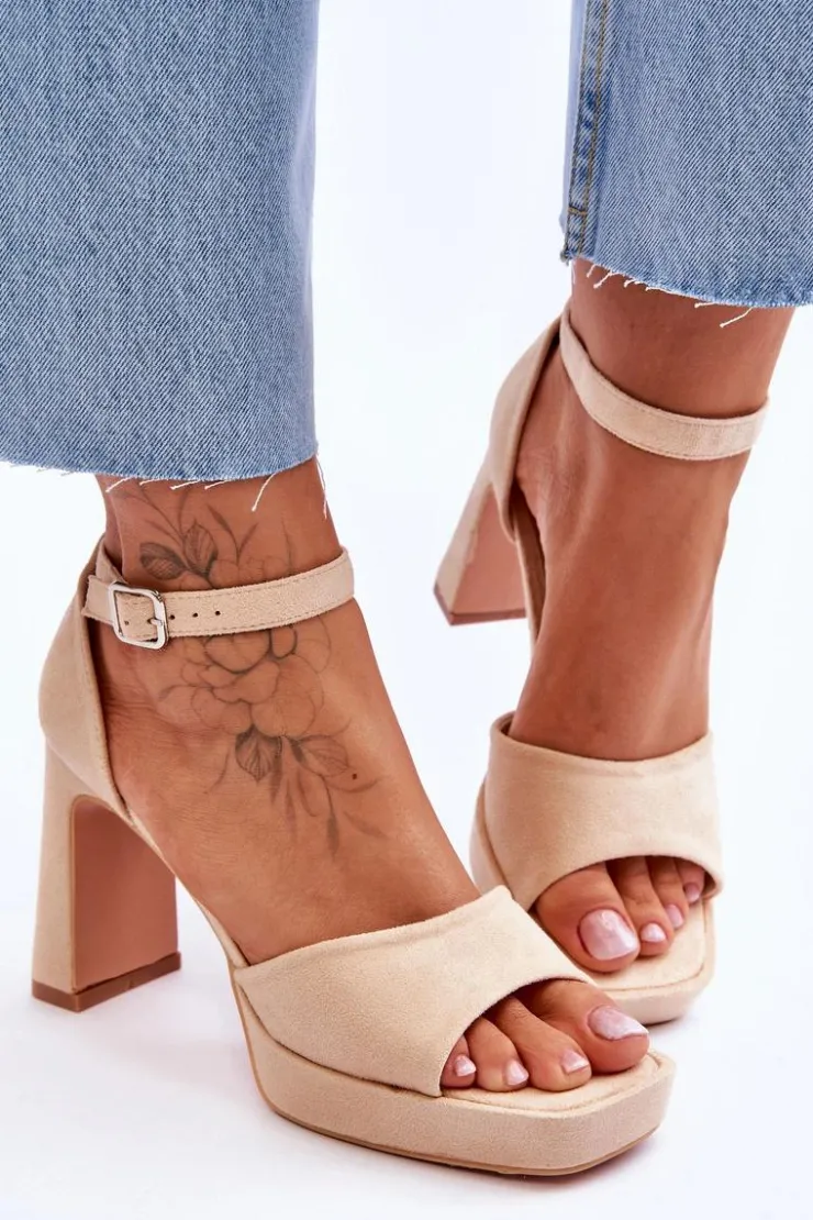 Discount Boto Zamszowe Klasyczne Sandały Na Platformie Beżowe Classy