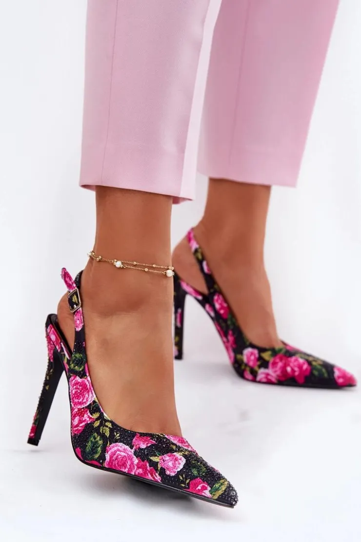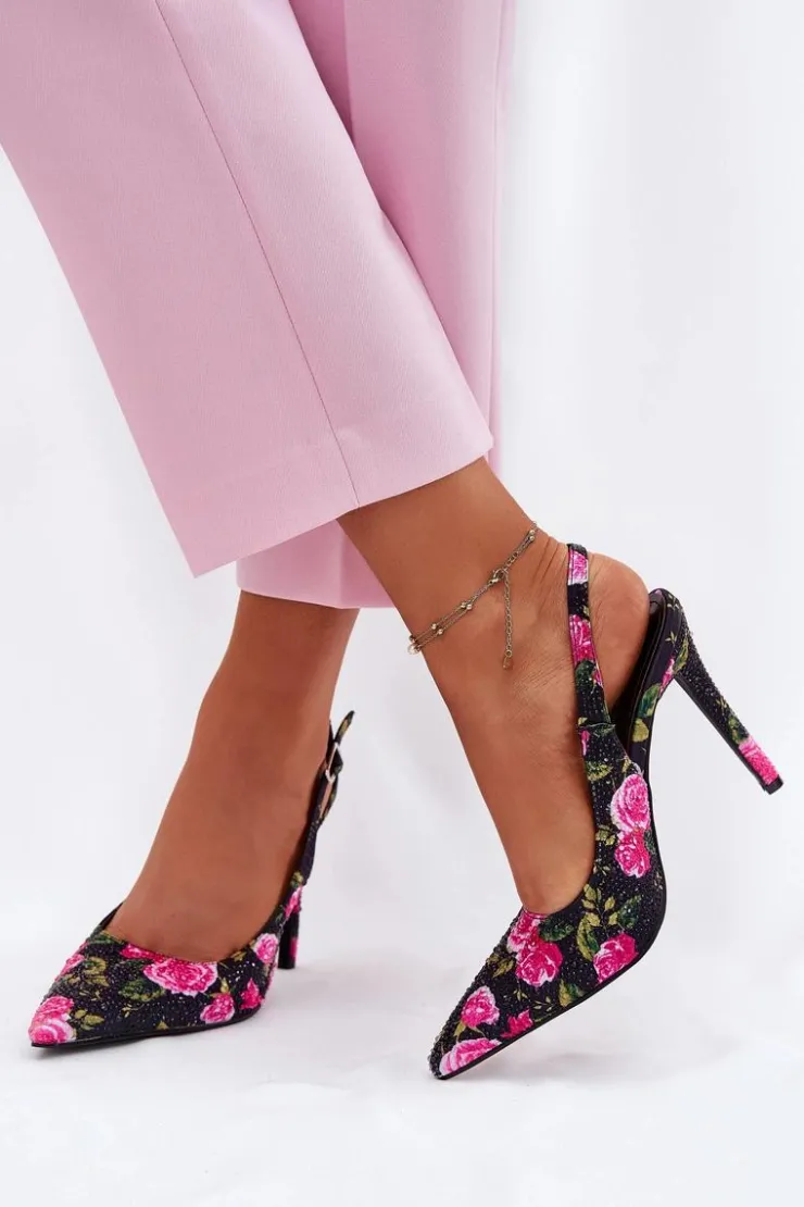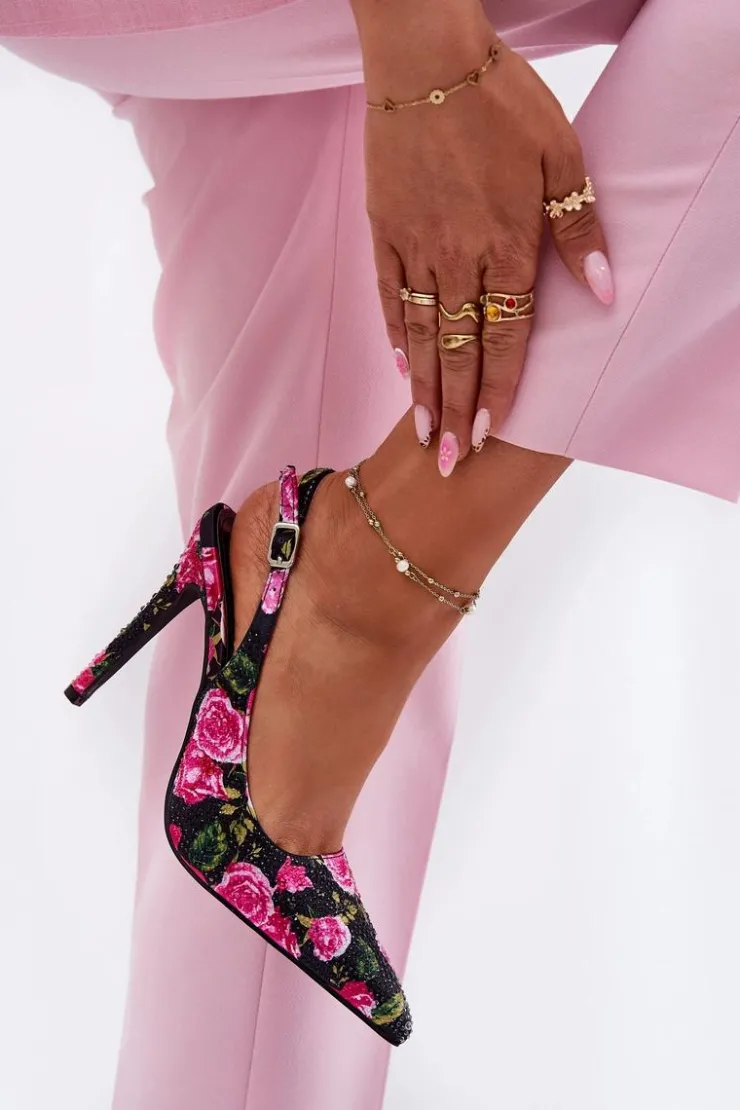 Zdobione sandały damskie na szpilce to propozycja dla kobiet ceniących styl i oryginalność. Model z noskami w szpic pięknie wysmukla stopę. Zapinane na sprzączkę wokół kostki, zapewniają stabilność i dopasowanie. Cholewka wyróżnia się wyrazistym wzorem w róże, który dodaje całości wyjątkowego charakteru. To idealny wybór na specjalne okazje, uroczystości czy letnie wieczory, gdy chcesz podkreślić swój niepowtarzalny styl. Przy wyborze rozmiaru prosimy sugerować się tabelą rozmiarów.
