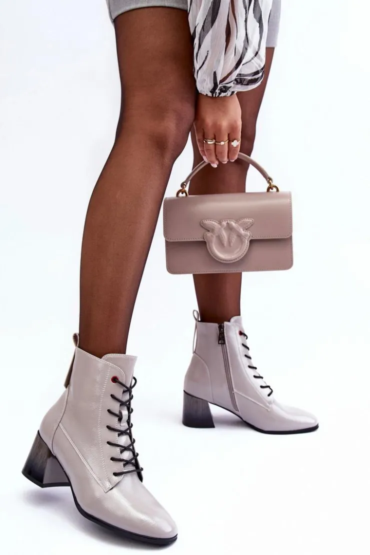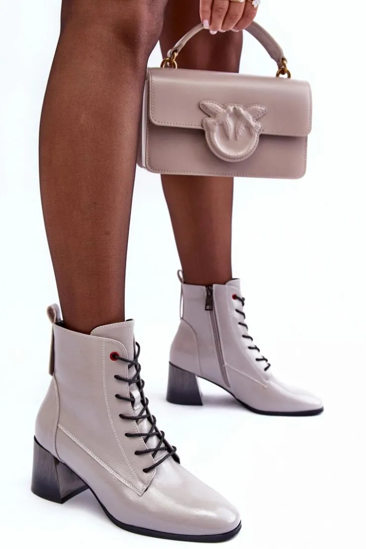 Discount Buty damskie Vinceza Lakierowane Botki Na Słupku Szare Basciano