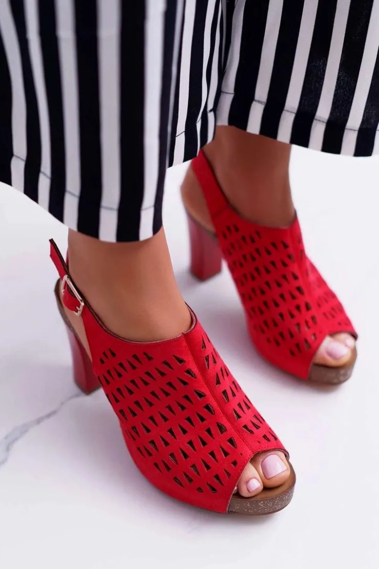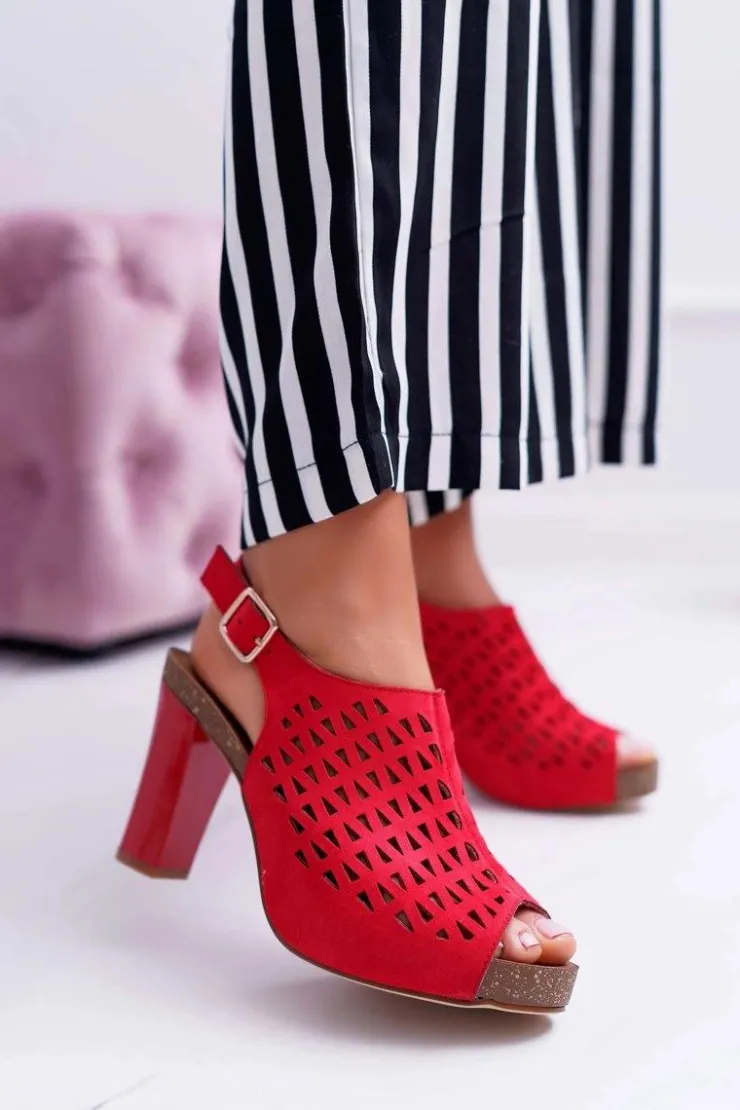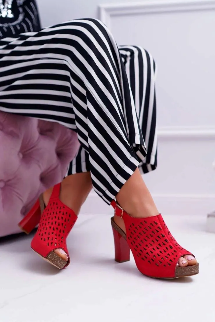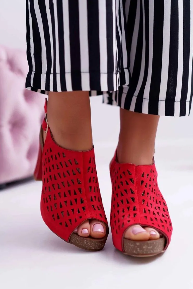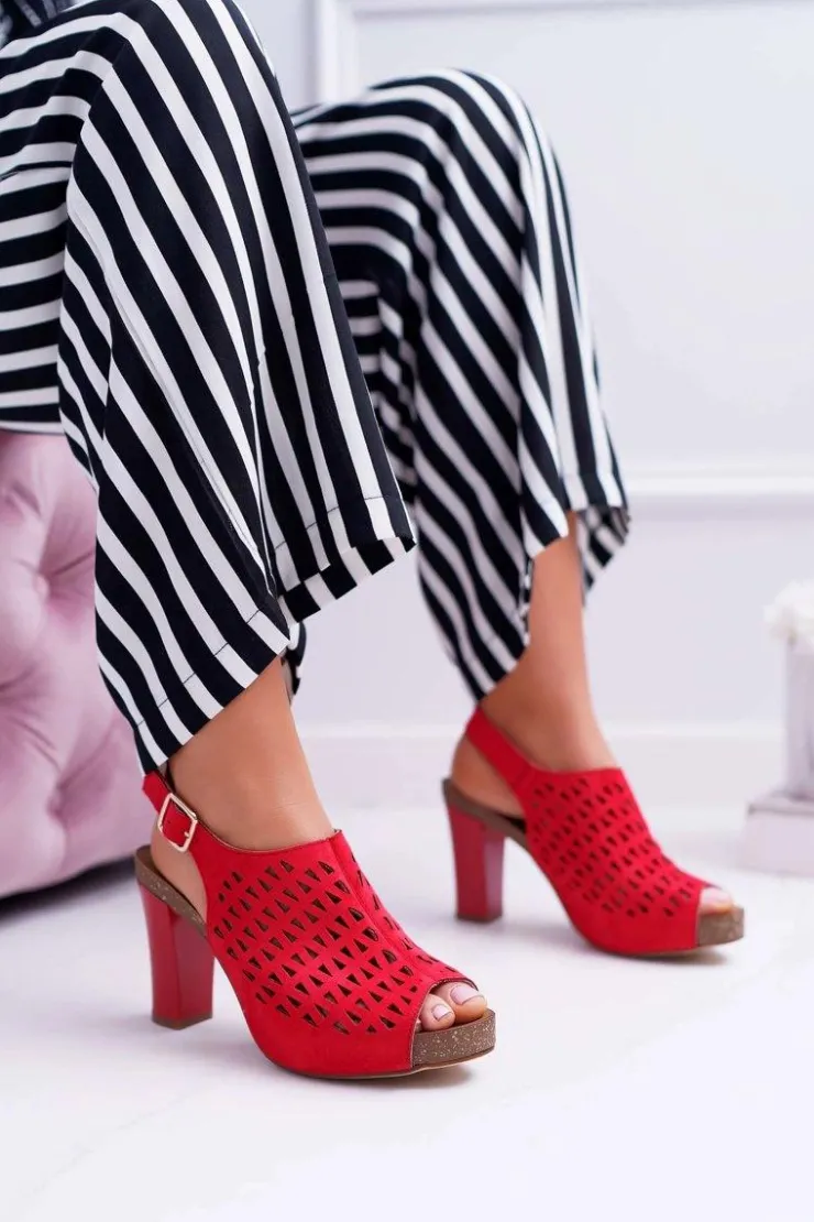 Discount Buty Sergio Leone Sandały Damskie Na Słupku Sergio Leone SK850 Czerwone Farmona