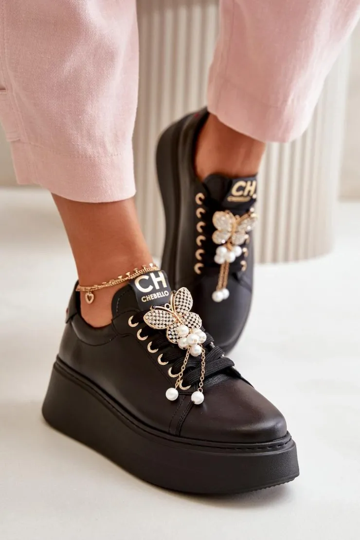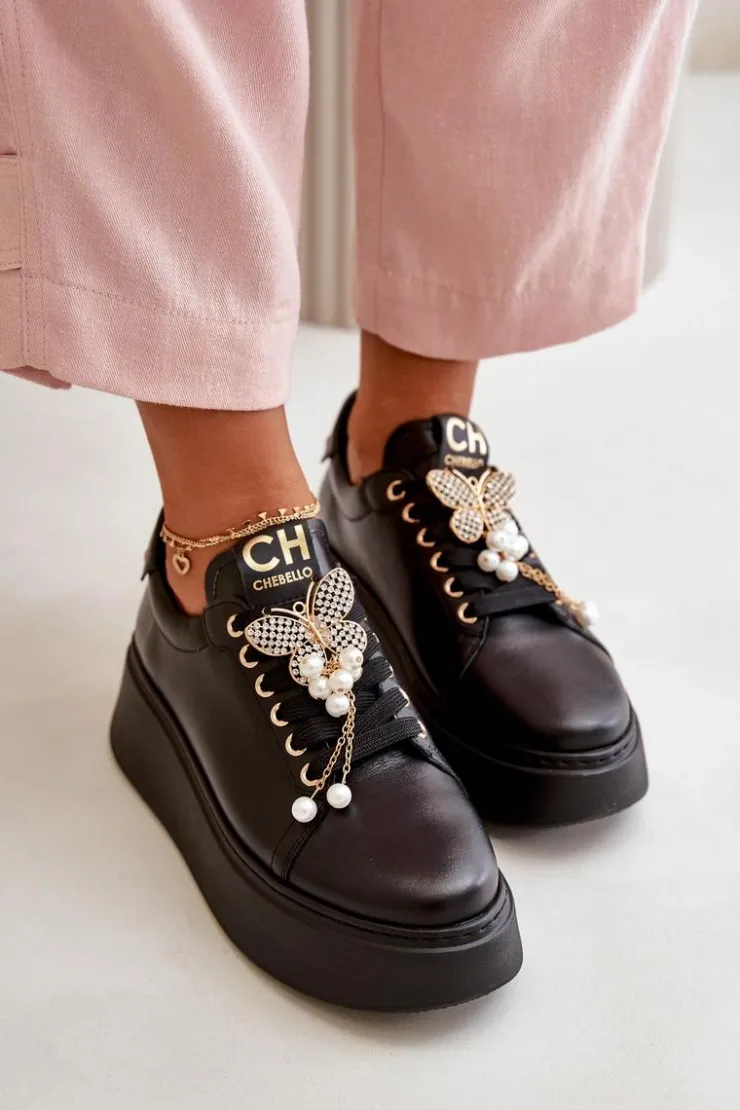 Sneakersy damskie od marki CheBello. Wykonane z wysokiej jakości skóry naturalnej. Osadzone na platformie. Noski zaokrąglone. Szczególnym atutem tego modelu jest piękny ozdobny motyl na sznurowaniu. Buty te to świetna propozycja dla osób, które chcą połączyć wygodę z elegancją w codziennych stylizacjach! Przy wyborze rozmiaru prosimy sugerować się tabelą rozmiarów.