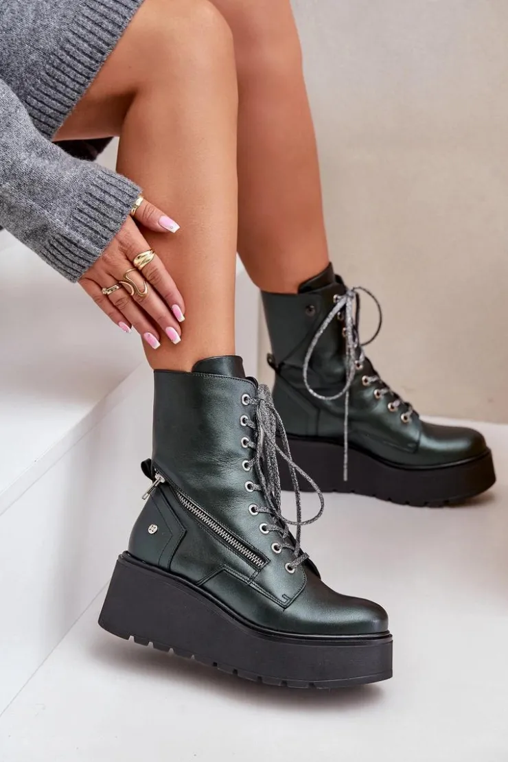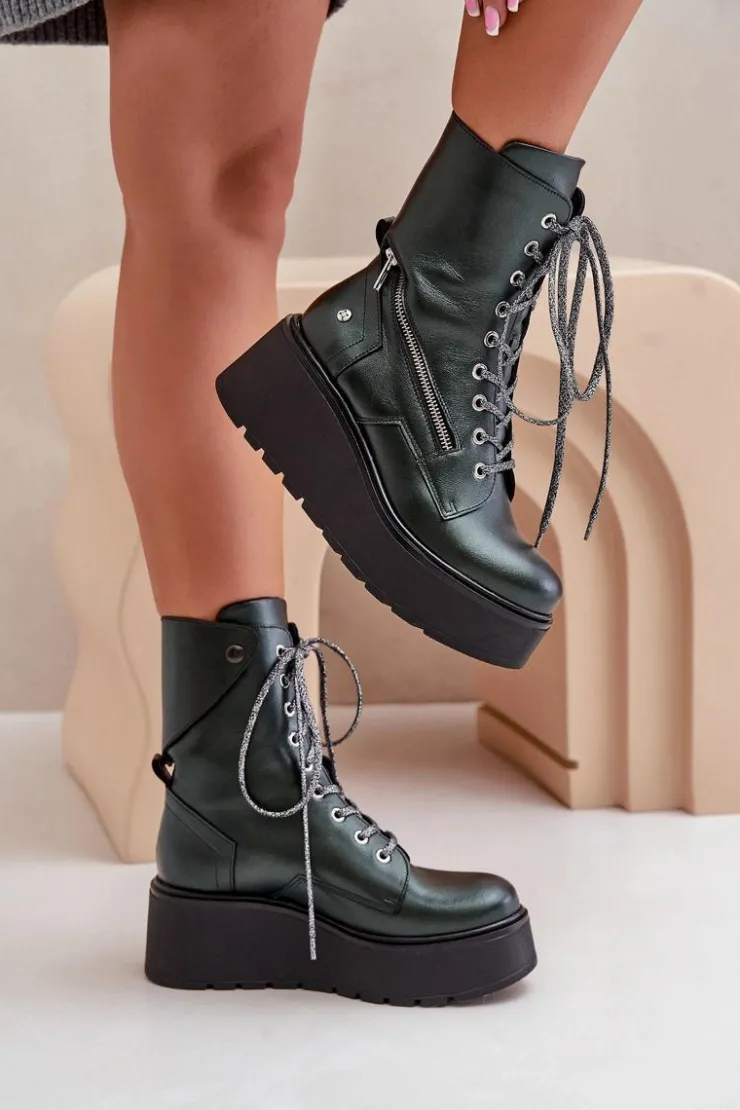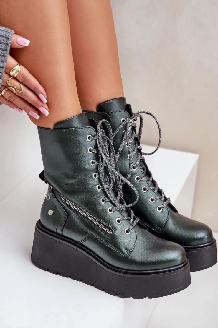 Botki workery marki Maciejka to wyjątkowy model, który łączy styl i funkcjonalność. Osadzone na koturnie i platformie, zapewniają wygodę i stabilność. Cholewka zapinana na zamek i zatrzask dodaje oryginalnego charakteru, a zaokrąglone noski zwiększają komfort noszenia. Wnętrze lekko ocieplane kocem obuwniczym, dzięki czemu sprawdzą się doskonale w chłodniejsze dni. Idealne do codziennych, casualowych stylizacji. Przy wyborze rozmiaru prosimy sugerować się tabelą rozmiarów.