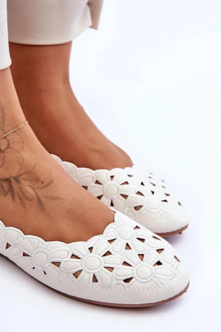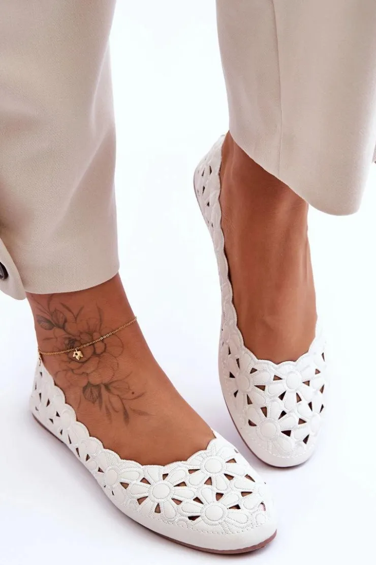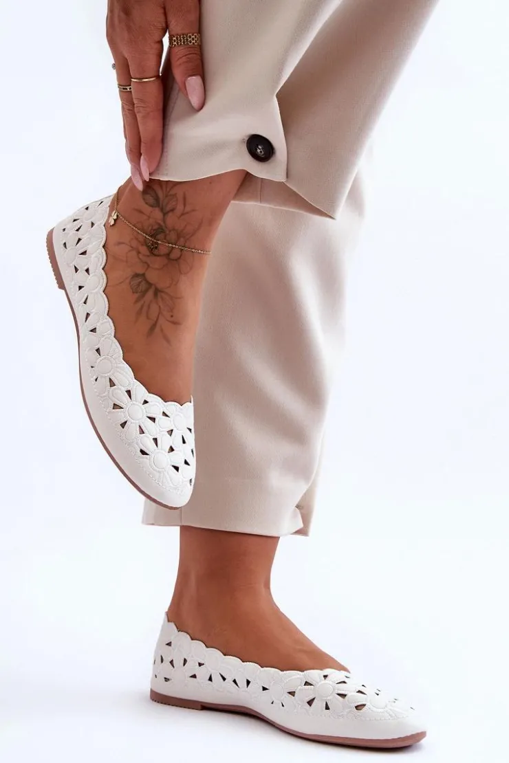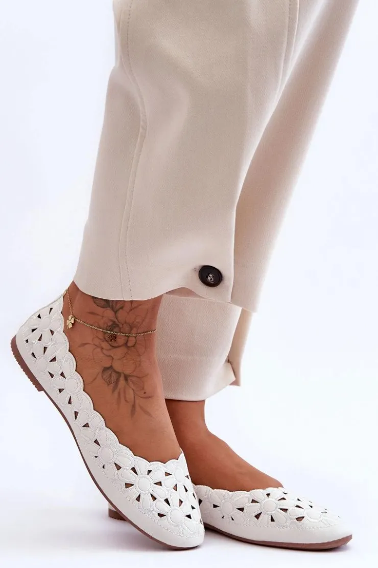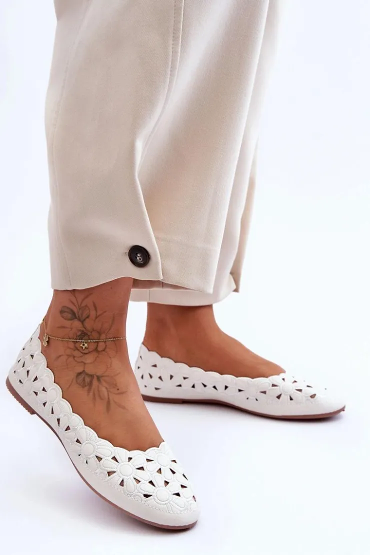 Evento Baleriny Klasyczne*Ażurowe Błyszczące Baleriny Damskie Białe Visionary Biały