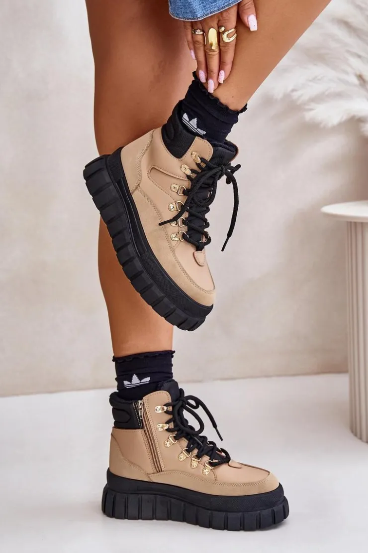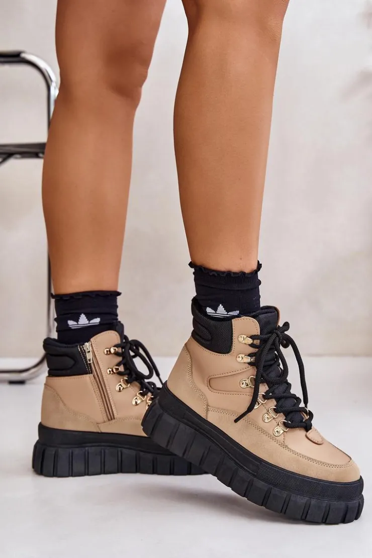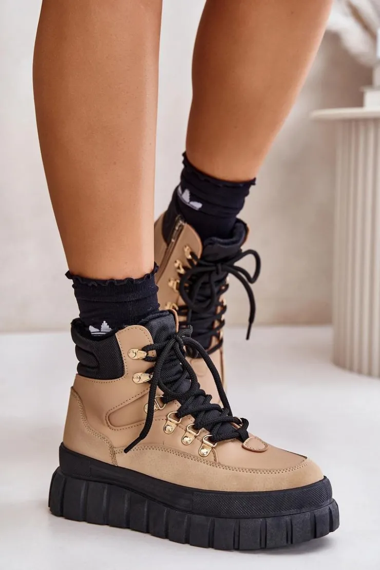 Evento Botki Ocieplane|Damskie Trapery*Damskie Ocieplane Botki Trapery Na Platformie Brązowe Jelenia Brązowy