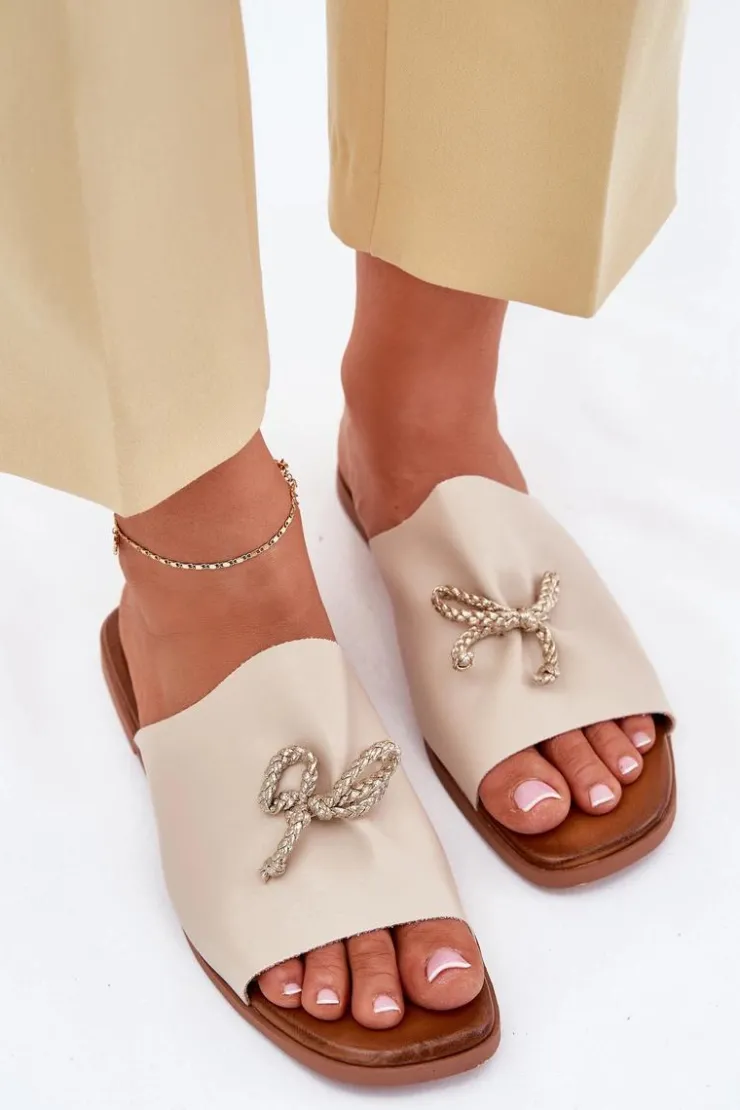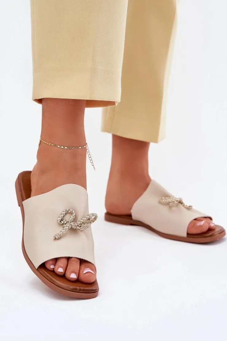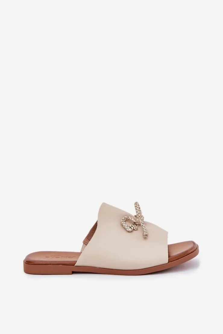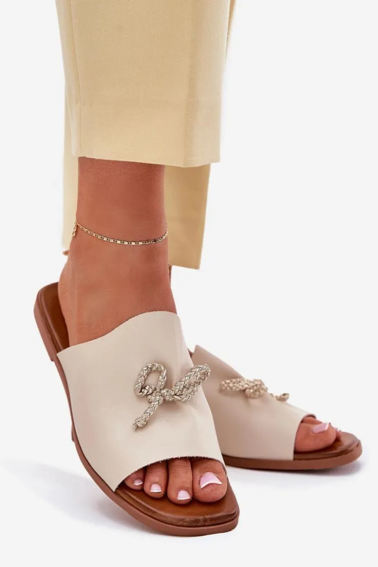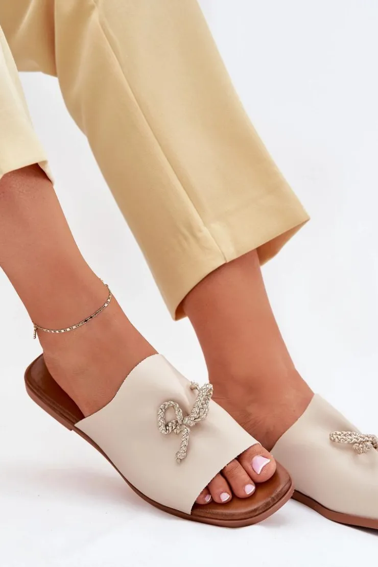 Klapki damskie z eko skóry, osadzone na płaskim obcasie, to elegancka propozycja na ciepłe dni. Model ten wyróżnia się subtelnym ozdobnym wiązaniem, które dodaje im wyjątkowego charakteru. Ich klasyczny fason sprawia, że doskonale komponują się zarówno z sukienkami, jak i spodniami materiałowymi, tworząc stylowy i wygodny look. Przy wyborze rozmiaru prosimy sugerować się tabelą rozmiarów.