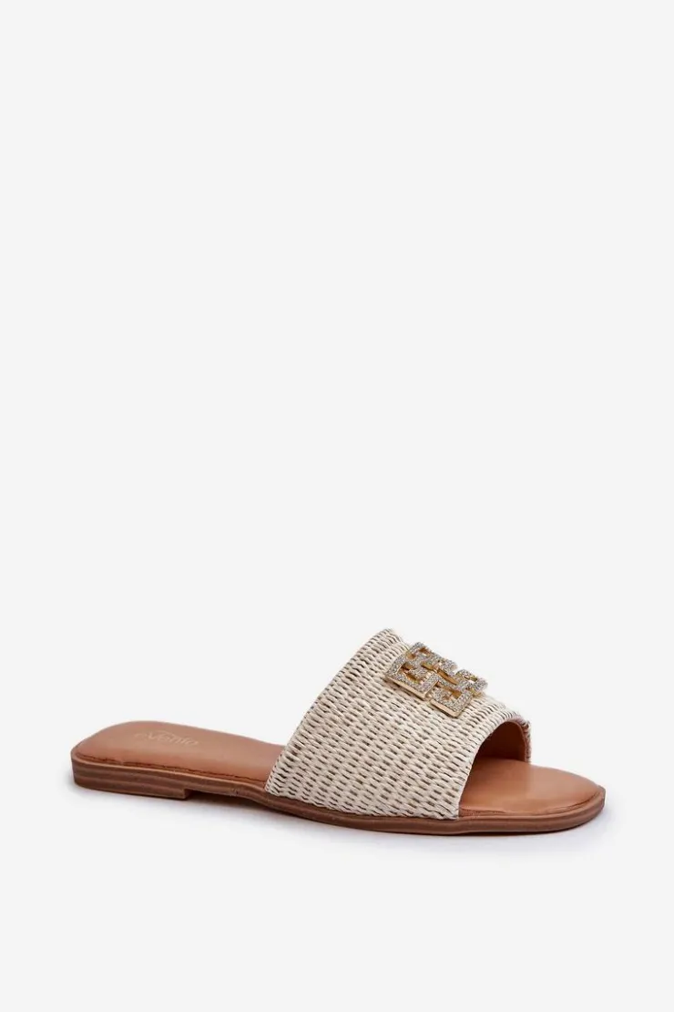 Damskie płaskie klapki z plecionką. Ozdoba z przodu nie tylko nadaje elegancji, ale także sprawia, że są doskonałym wyborem na wiele okazji, od relaksujących spacerów po plaży po letnie spotkania ze znajomymi. Przy wyborze rozmiaru prosimy sugerować się tabelą rozmiarów.