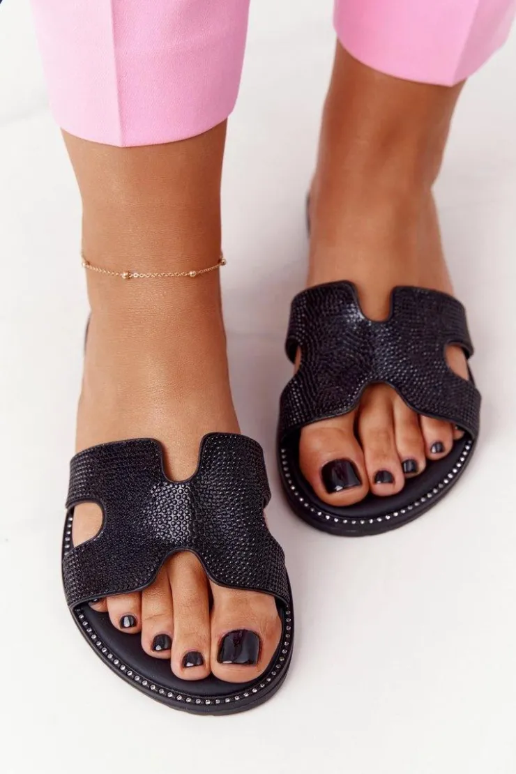 Eleganckie klapki z cyrkoniami. Buty wykonane są ze skóry ekologicznej z dbałością o każdy detal. Miękka wkładka ze skóry naturalnej oraz antypoślizgowa podeszwa zadbają o Twój komfort. Klapki dopełnią wiele letnich stylizacji! Koniecznie sprawdź całą naszą kolekcję damskich klapek. Przy wyborze rozmiaru prosimy sugerować się tabelą rozmiarów.