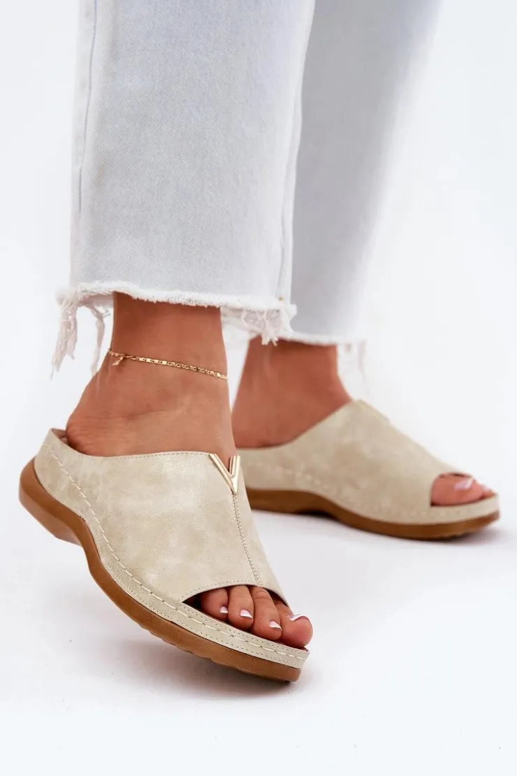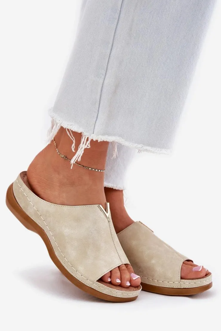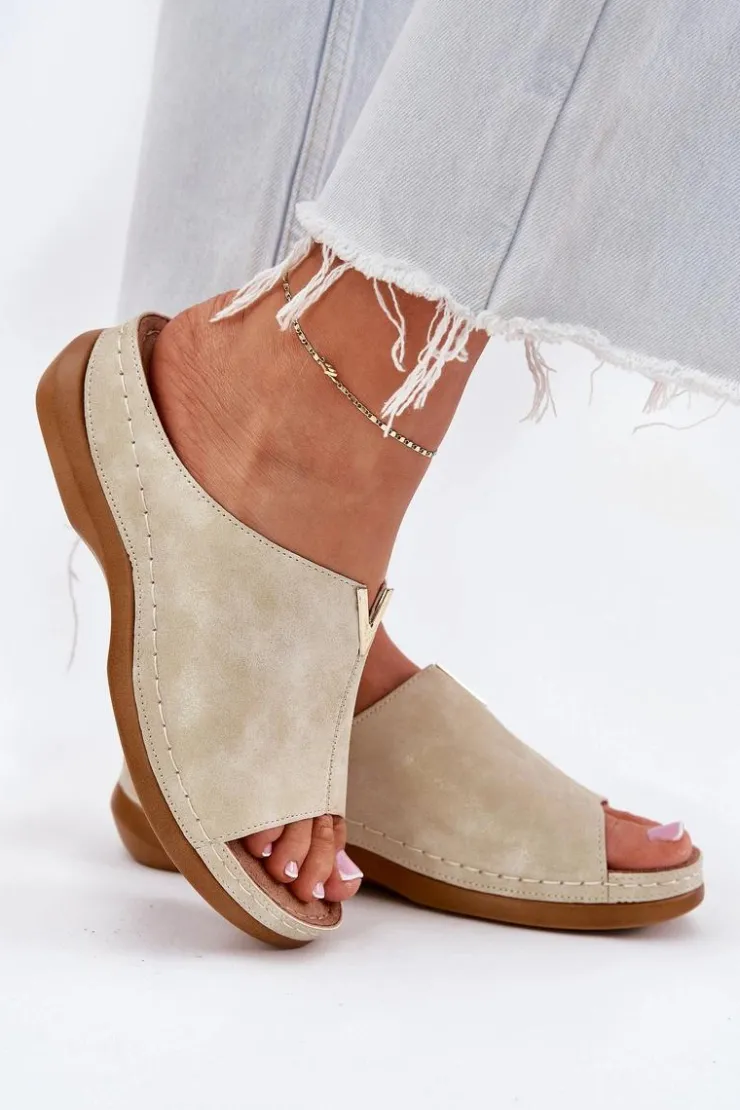 Eleganckie damskie klapki wykonane z eko skóry to połączenie stylu i komfortu. Osadzone na koturnie, zapewniają lekkość oraz stabilność przez cały dzień. Model ten posiada miękką wkładkę Comfortshoe z efektem poduszki, co gwarantuje wygodę nawet przy długotrwałym noszeniu. Te klapki doskonale komponują się z codziennymi stylizacjami, łącząc elegancję z funkcjonalnością. Idealne na ciepłe dni! Przy wyborze rozmiaru prosimy sugerować się tabelą rozmiarów.