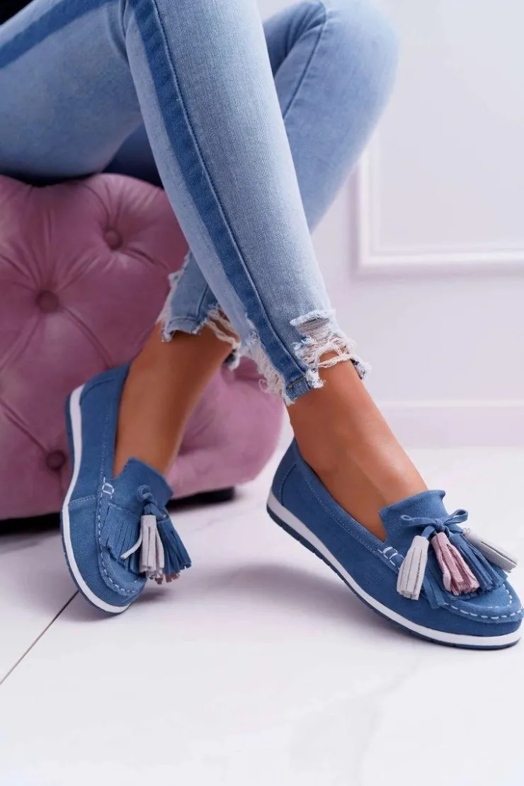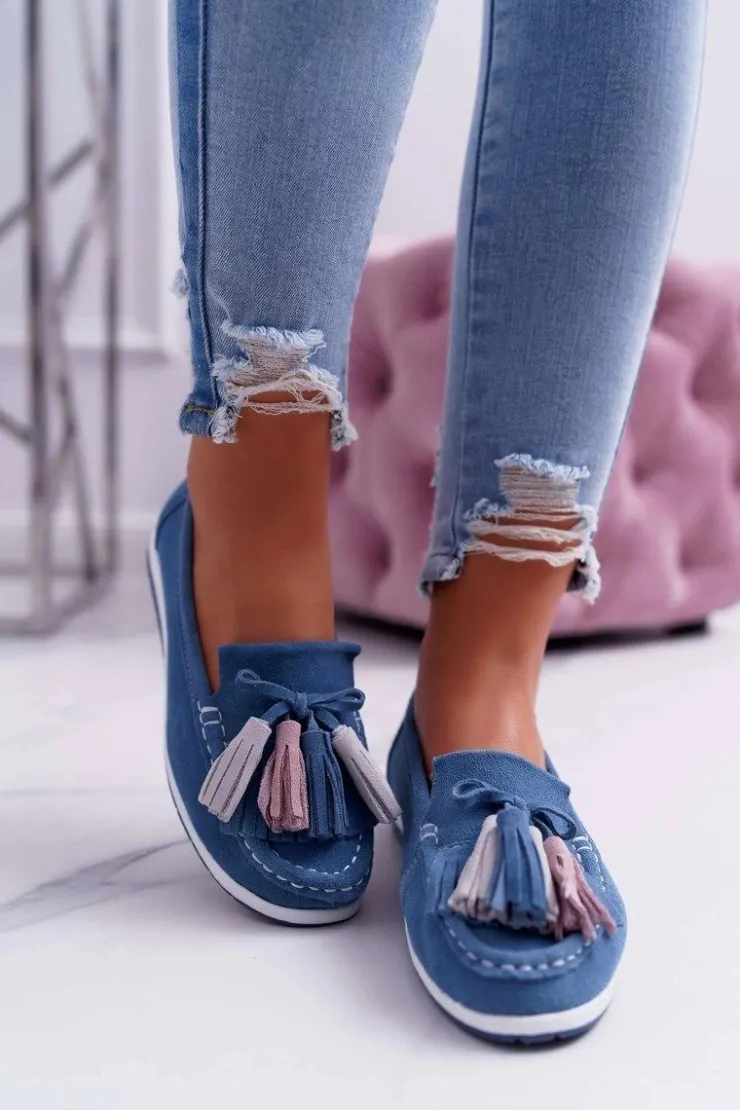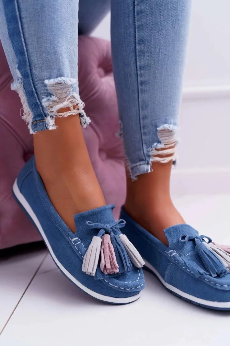 Evento Mokasyny Damskie Zamszowe*Mokasyny Damskie Skórzane Zamszowe Z Frędzlami Niebieskie Batist