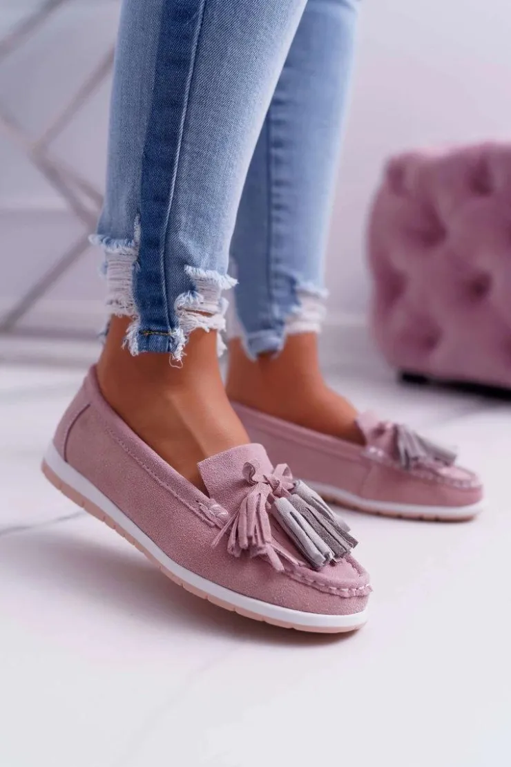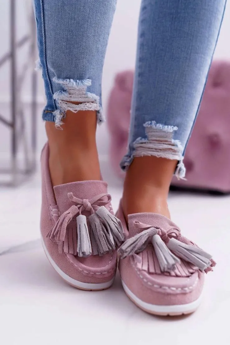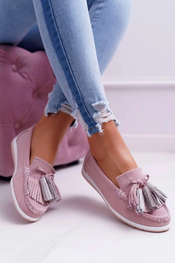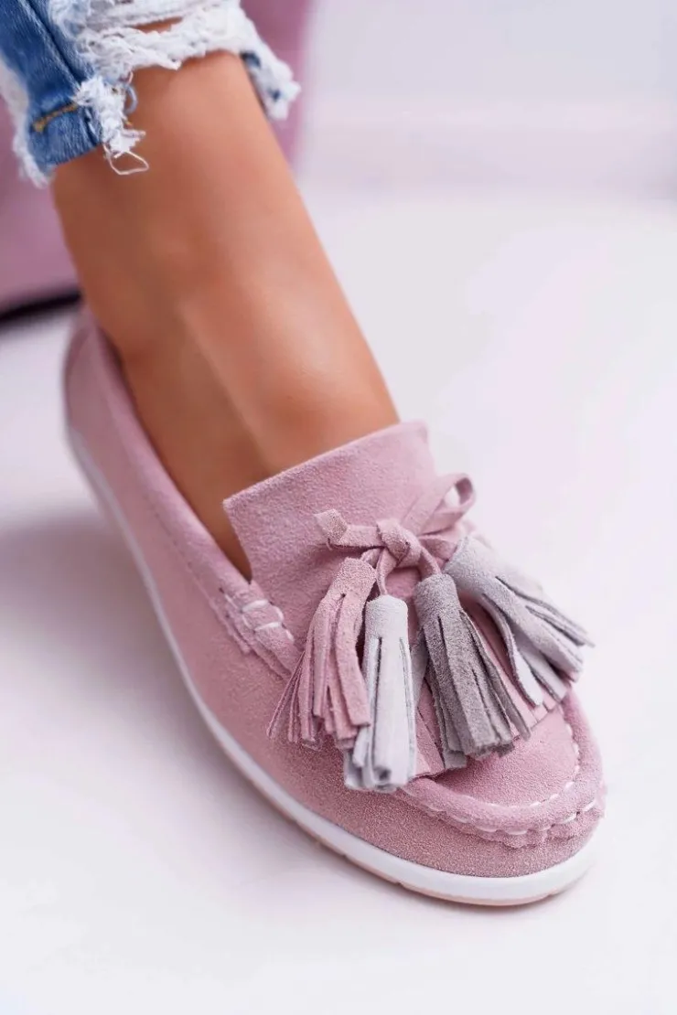 Evento Mokasyny Damskie Zamszowe*Mokasyny Damskie Skórzane Zamszowe Z Frędzlami Różowe Batist
