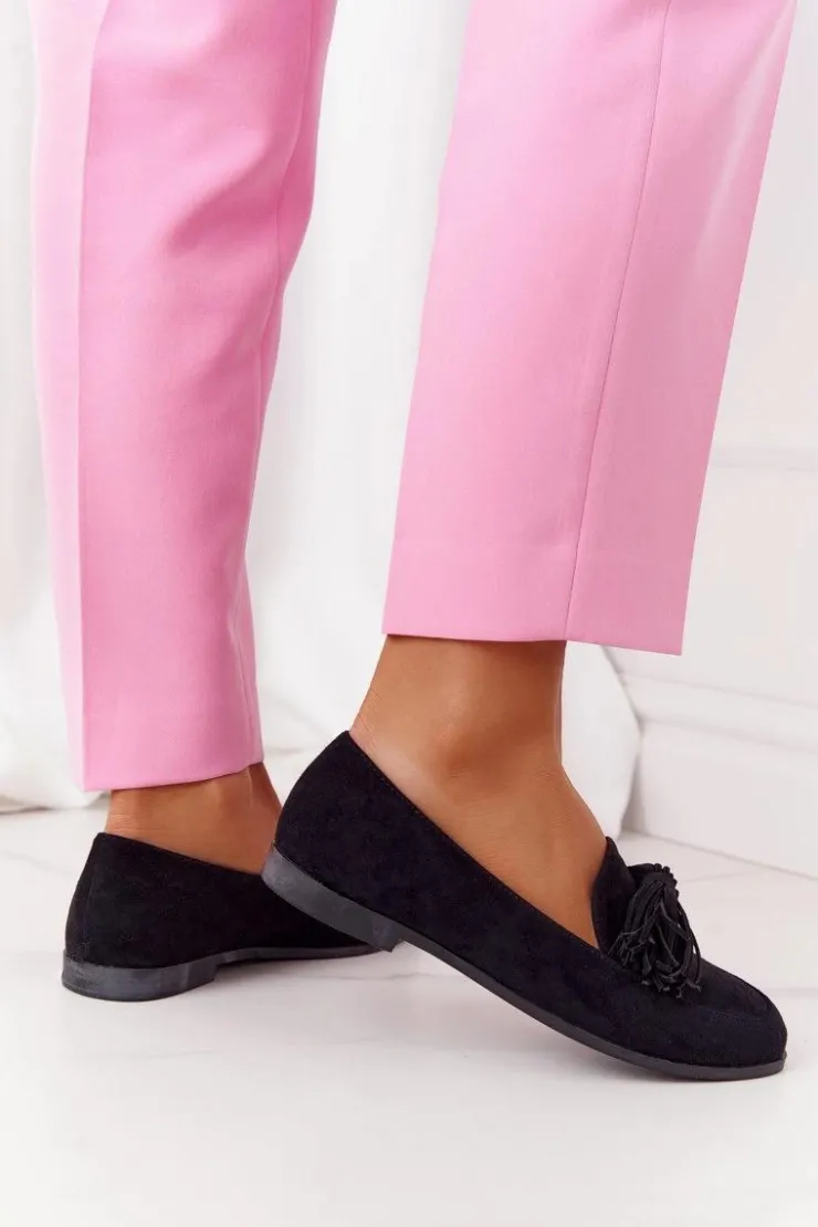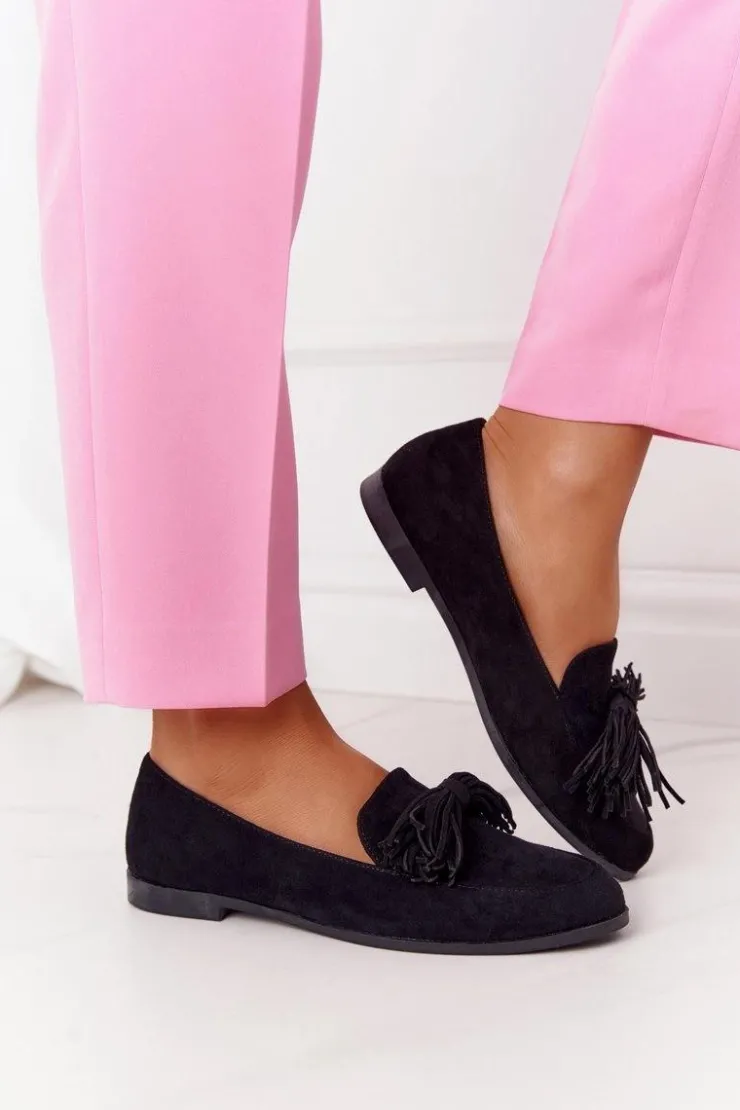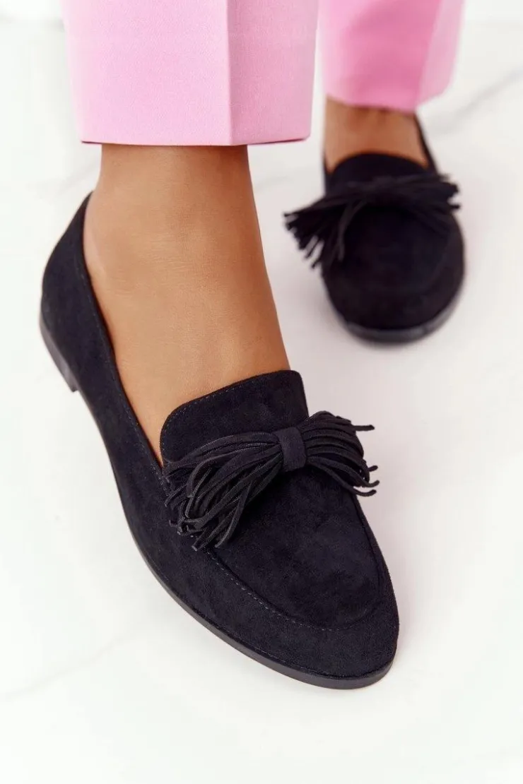 Evento Mokasyny Damskie Zamszowe*Zamszowe Mokasyny Z Frędzlami Czarne Alicante