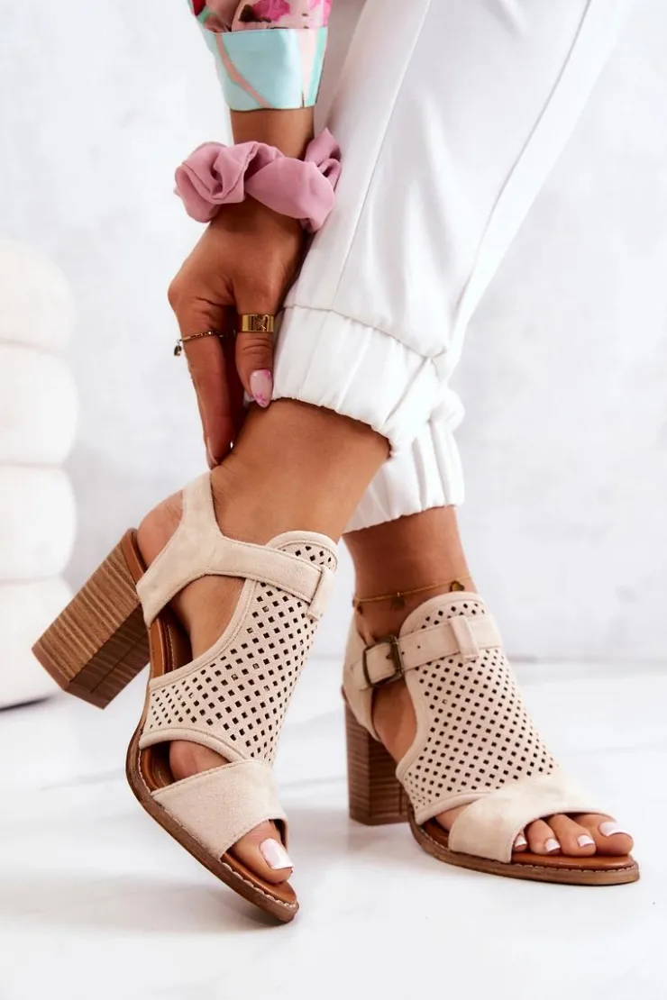 Piękne i wygodne sandały na słupku. Buty wykonane są z wysokiej jakości zamszowej eko skóry. O Twój komfort zadba miękka cholewka oraz wkładka ze skóry naturalnej. Modny kolor i drewniany słupek urozmaicą wszystkie Twoje stylizacje. Koniecznie sprawdź całą naszą kolekcję damskich sandałów! Przy wyborze rozmiaru prosimy kierować się tabelą rozmiarów.