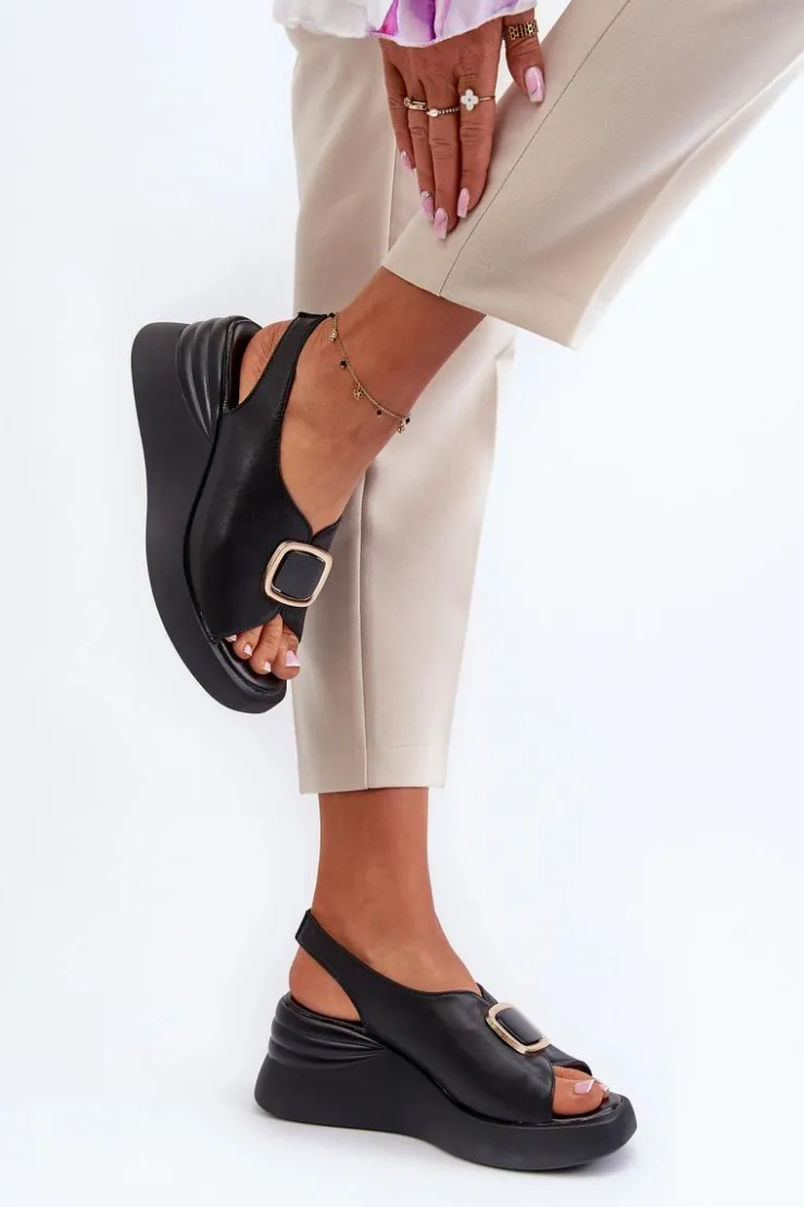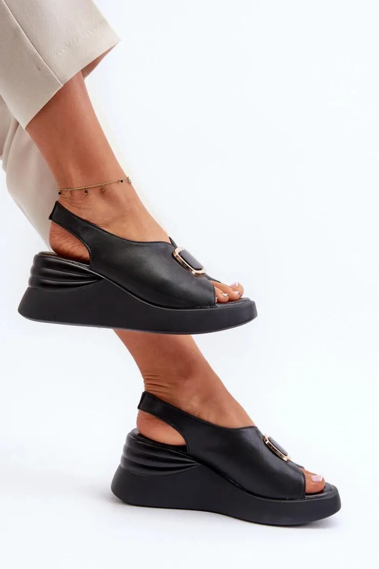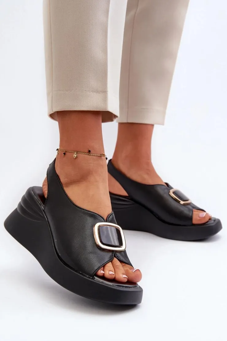 Modne sandały damskie na koturnie to połączenie stylu i wygody. Wykonane ze skóry naturalnej, prezentują elegancki wygląd, który doskonale komponuje się z różnymi letnimi stylizacjami. Z tyłu znajduje się gumka, która zapewnia lepsze dopasowanie do stopy i dodatkowy komfort podczas noszenia. To idealny wybór dla kobiet ceniących zarówno modny design, jak i wygodę. Przy wyborze rozmiaru prosimy sugerować się tabelą rozmiarów.