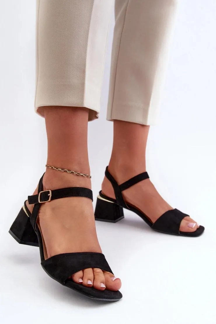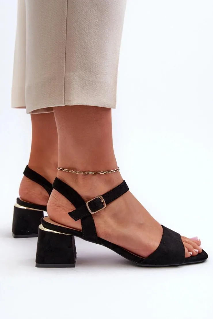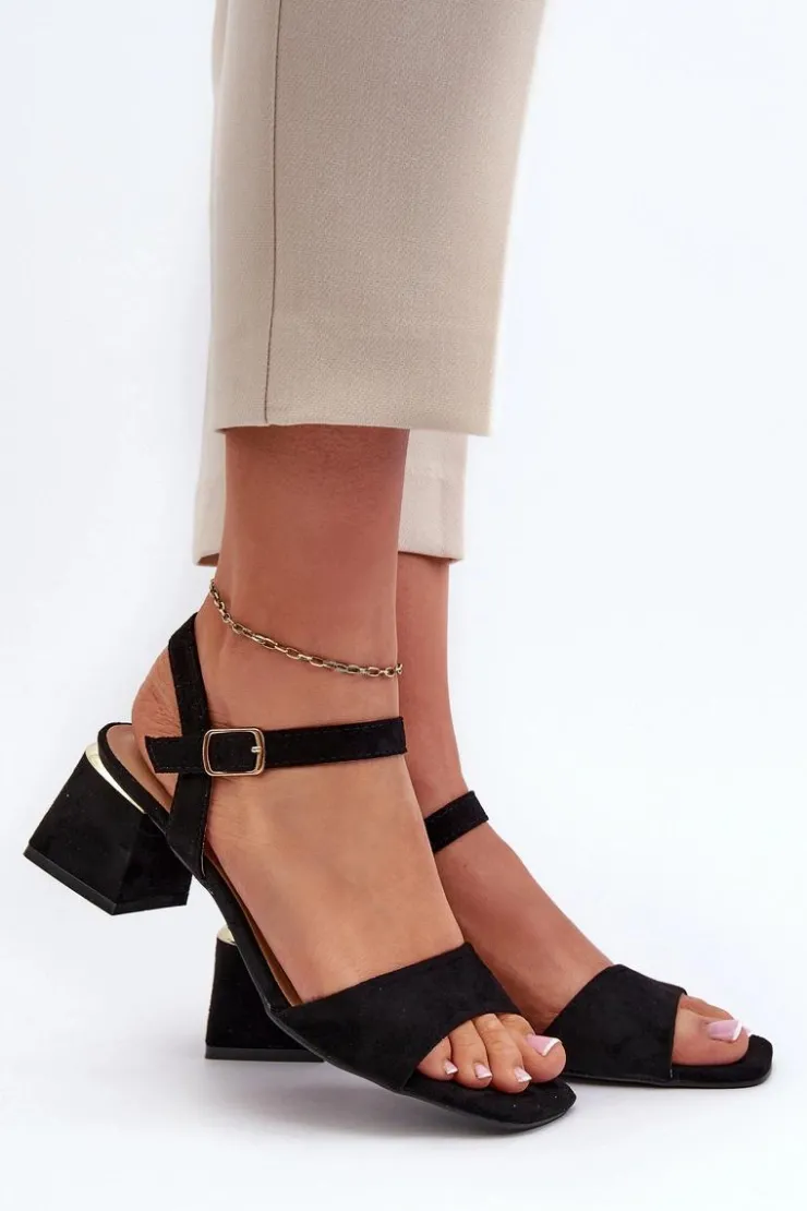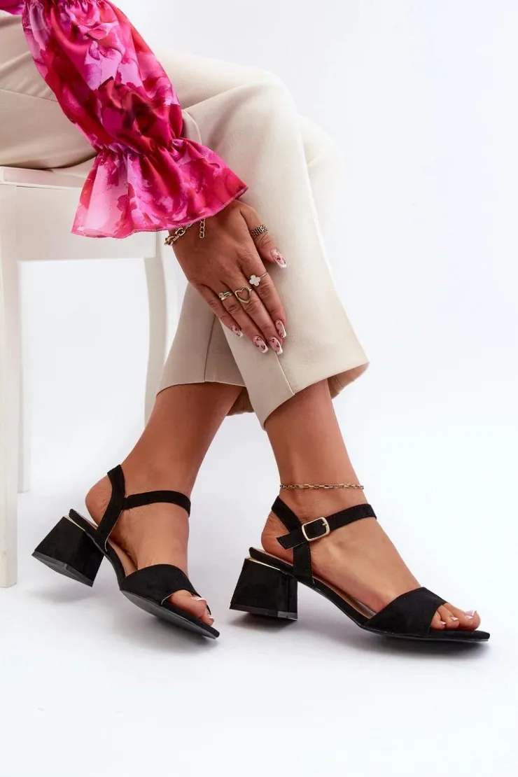 Evento Sandały Na Obcasie*Sandały Damskie Na Klocku Z Eko Zamszu Czarne Leisha