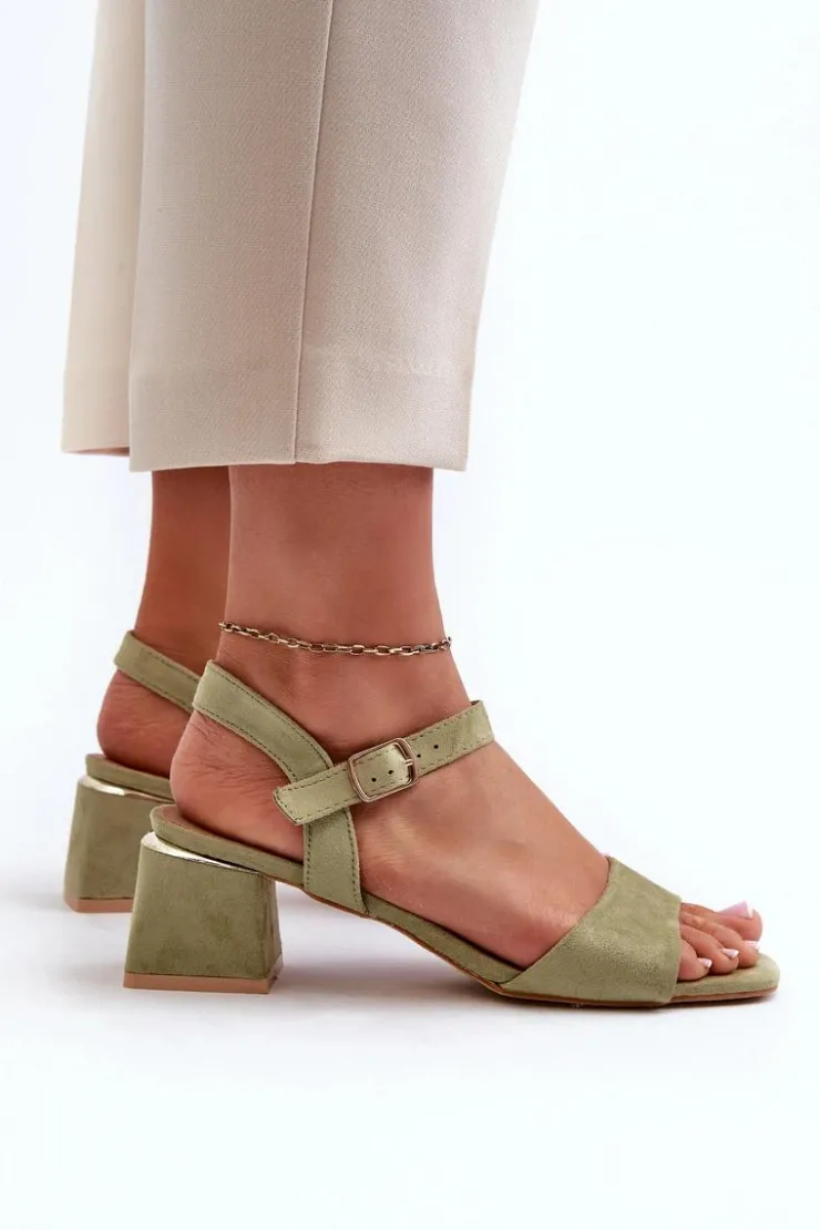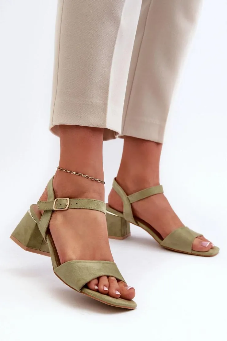 Sandały damskie wykonane z miłego w dotyku eko zamszu. Obcas w postaci klocka zapewnia stabilność. Zapinane na regulowany pasek ze sprzączką, gwarantują idealne dopasowanie do stopy. Idealne do letnich sukienek! Przy wyborze rozmiaru prosimy sugerować się tabelą rozmiarów.