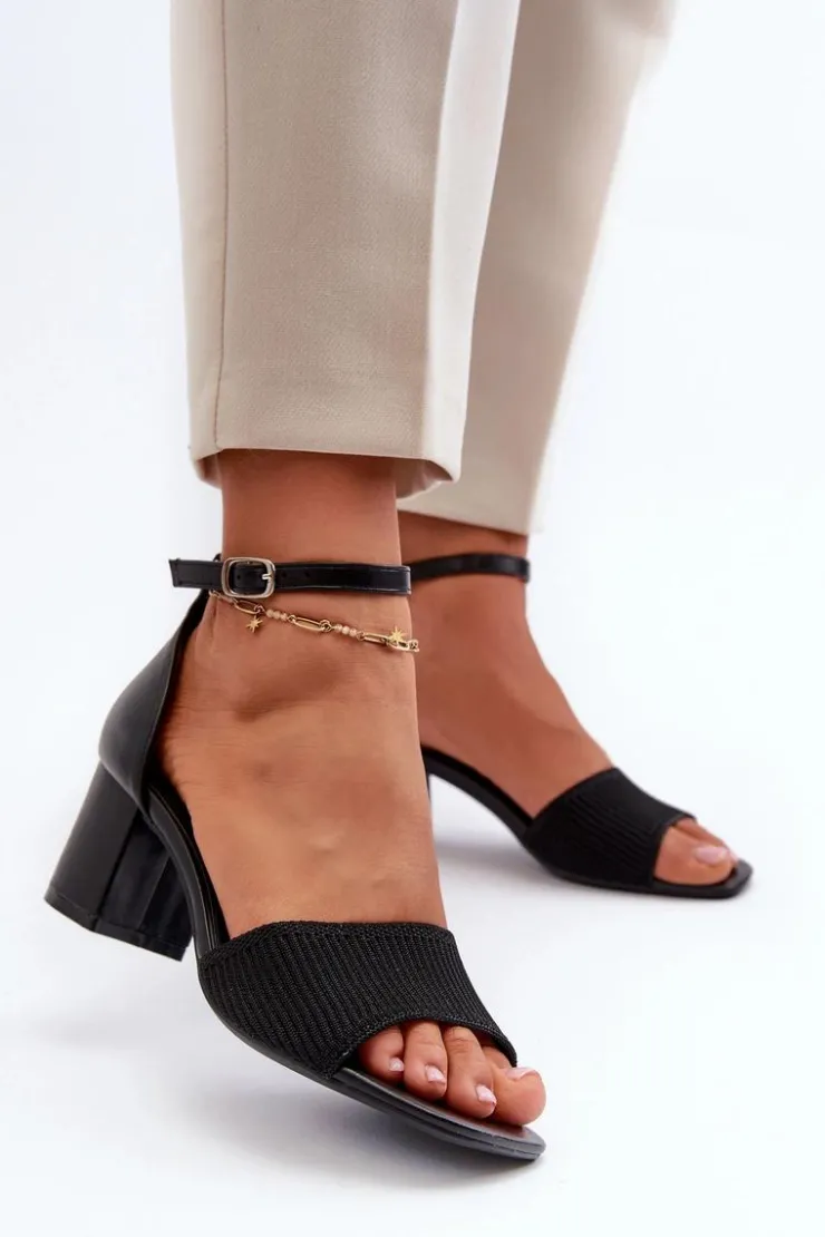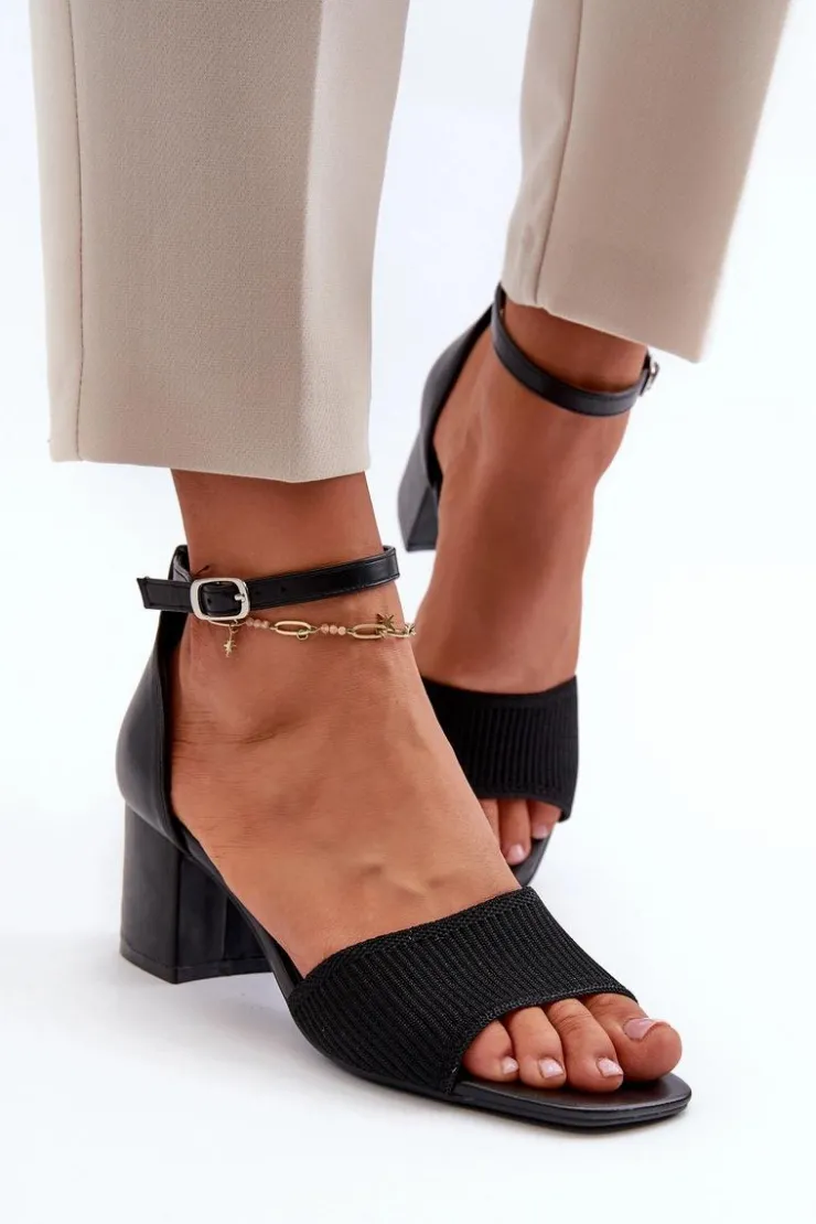 Damskie sandały na niskim słupku. Zapinane na regulowany pasek ze sprzączką. Idealne na każdą okazję, łączą wygodę i elegancję, dodając szyku każdej stylizacji. Przy wyborze rozmiaru prosimy sugerować się tabelą rozmiarów.