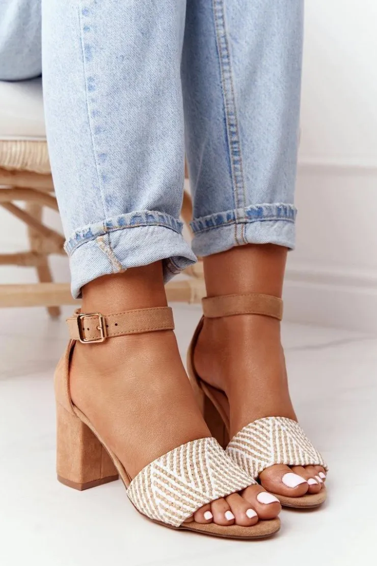 Piękne i wygodne sandały na słupku. Buty wykonane są z wysokiej jakości eko skóry, ozdobione modną plecionką. O Twój komfort zadba wkładka ze skóry naturalnej. Koniecznie sprawdź całą naszą kolekcję damskich sandałów! Przy wyborze rozmiaru prosimy kierować się tabelą rozmiarów.