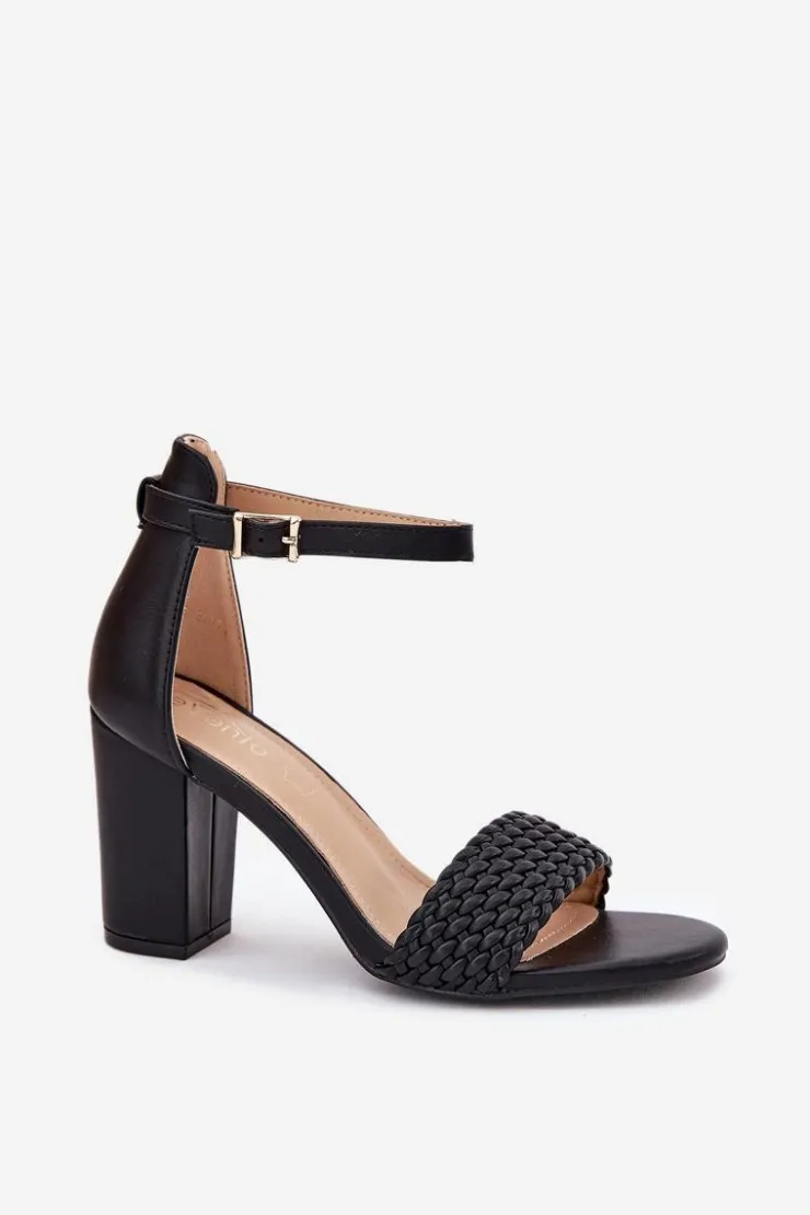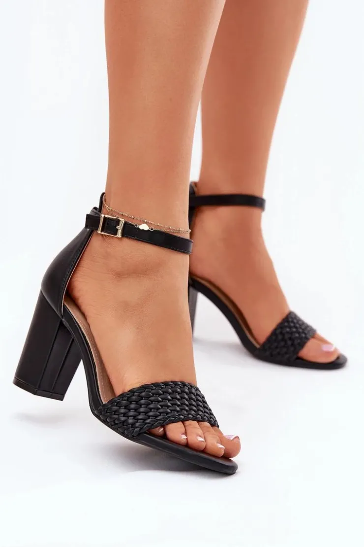 Sandały damskie wykonane z eko skóry to elegancka propozycja na ciepłe dni. Osadzone na obcasie w formie słupka, zapewniają stabilność i wygodę. Z przodu sandałów znajduje się pasek z plecionką, który dodaje im wyjątkowego charakteru. Zapinane na sprzączkę, umożliwiają idealne dopasowanie do stopy, a skórzana wkładka zapewnia komfort przez cały dzień. Idealne na różne okazje. Przy wyborze rozmiaru prosimy sugerować się tabelą rozmiarów.