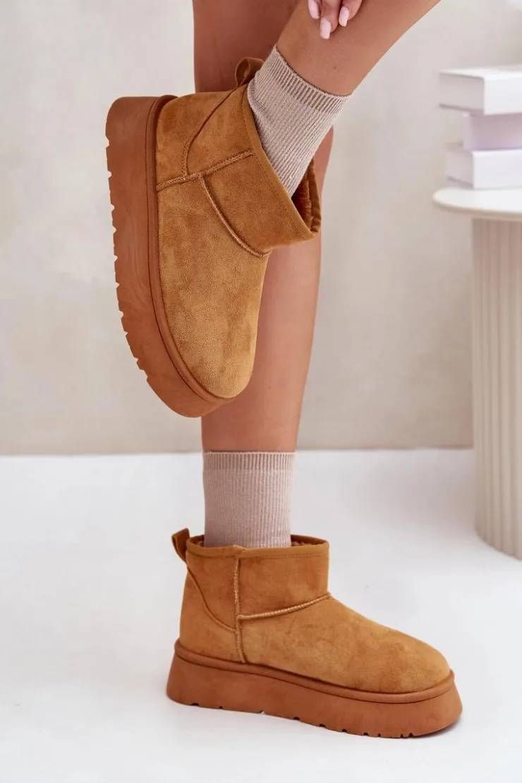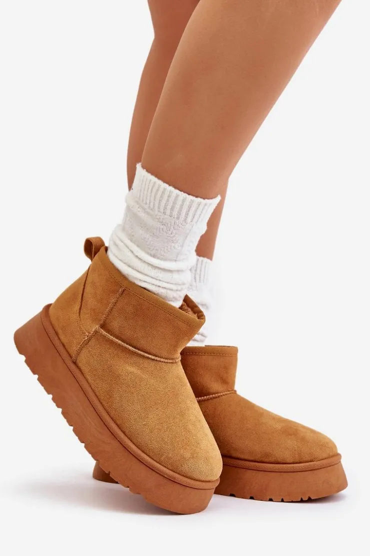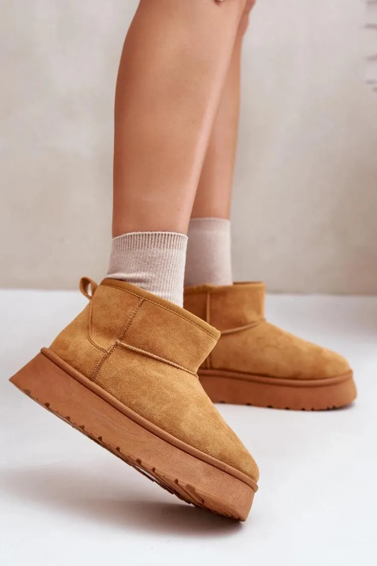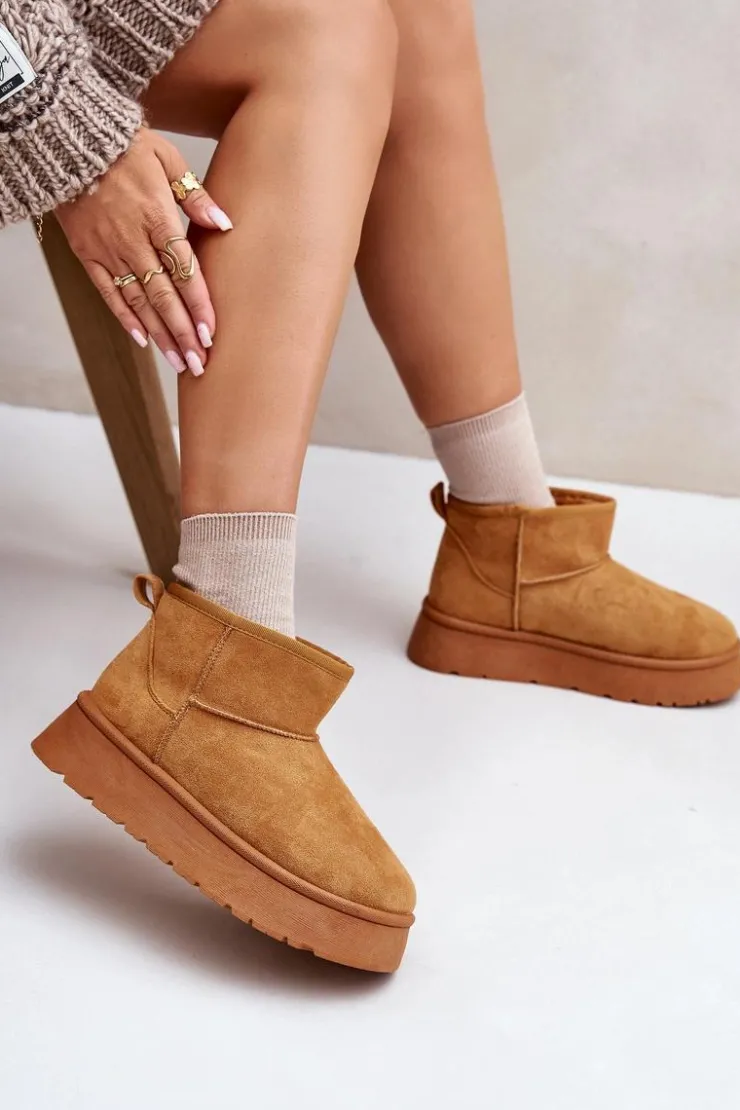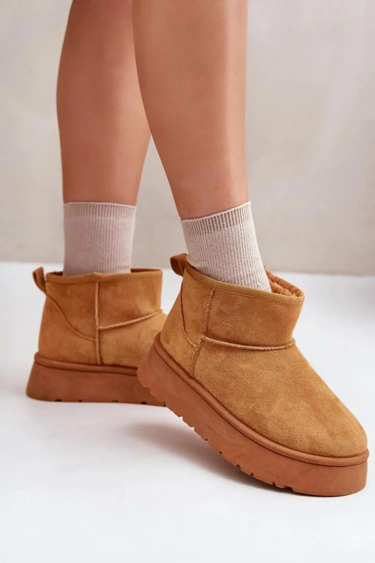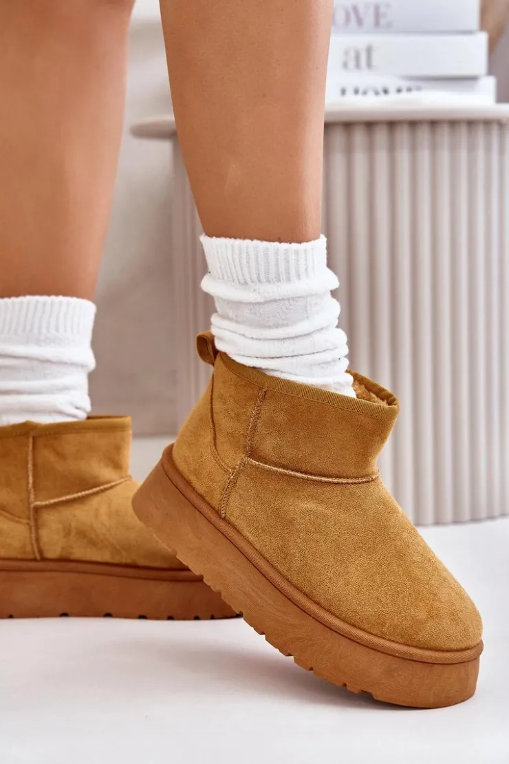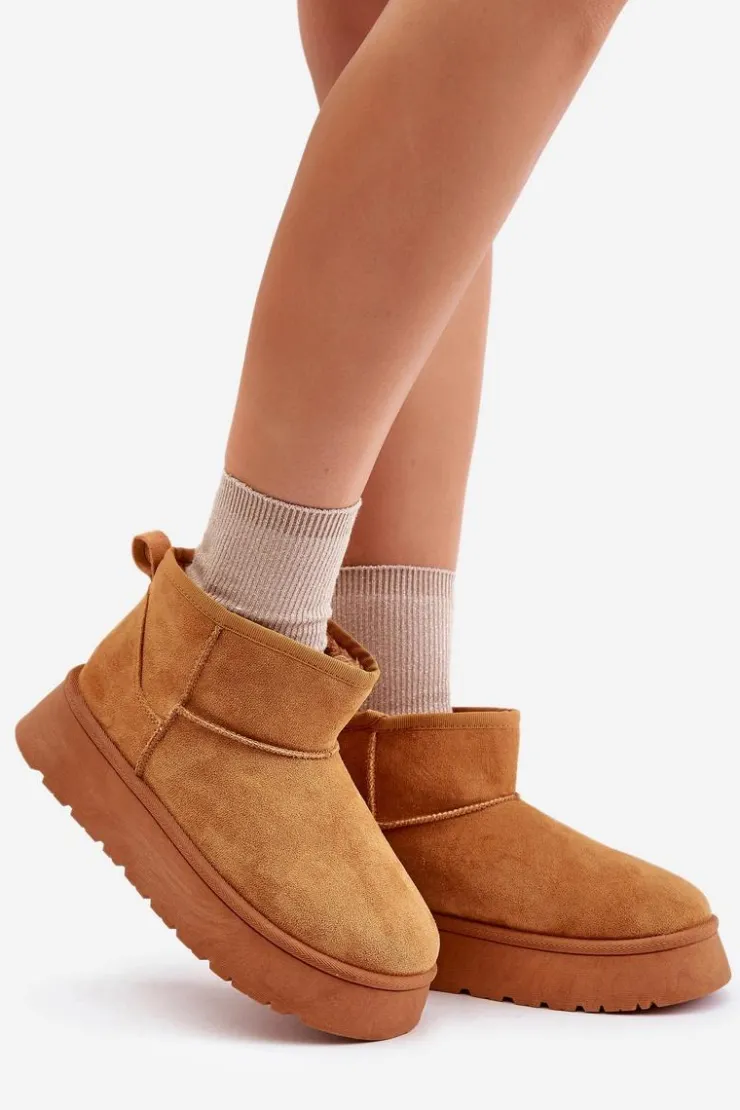Śniegowce damskie wykonane z eko zamszu. Osadzone na platformie, która świetnie odizoluje od zimnego podłoża. Grube futerko w środku zapewni ciepło nawet w najmroźniejsze dni. Niezwykle modny fason tego obuwia pozwala zestawić je z różnorodnymi stylizacjami, dodając charakteru każdemu zimowemu outfitowi! Przy wyborze rozmiaru prosimy sugerować się tabelą rozmiarów.