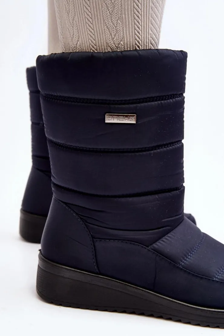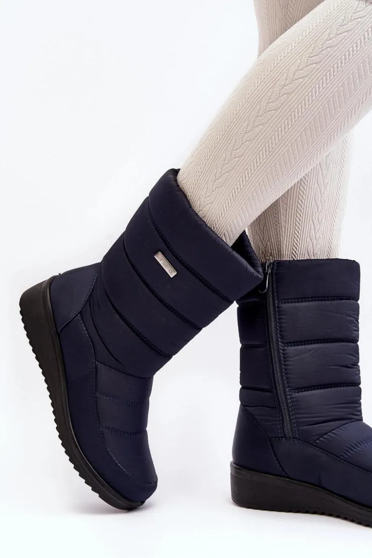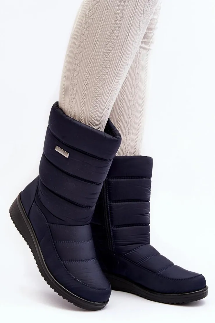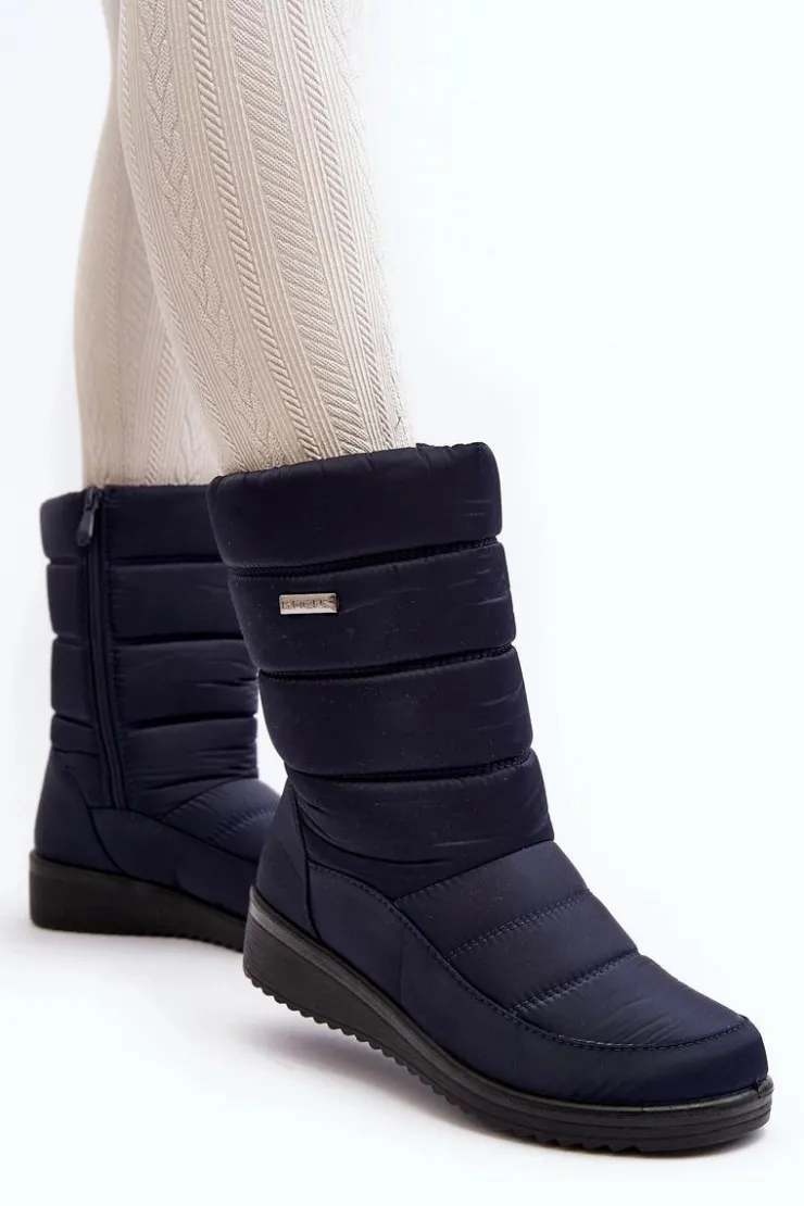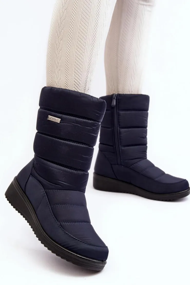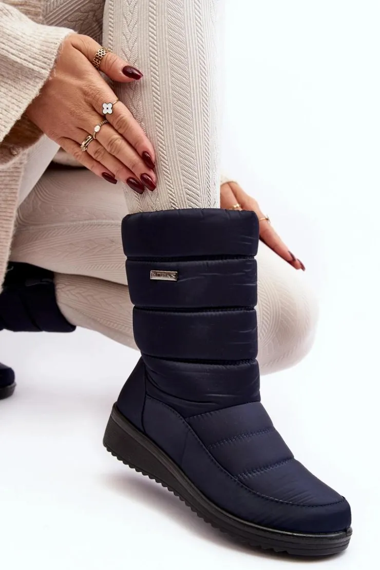 Evento Śniegowce Damskie*Ocieplane Śniegowce Na Koturnie Granatowe Calena Niebieski