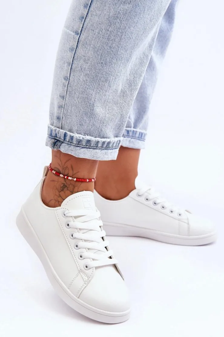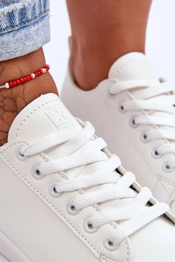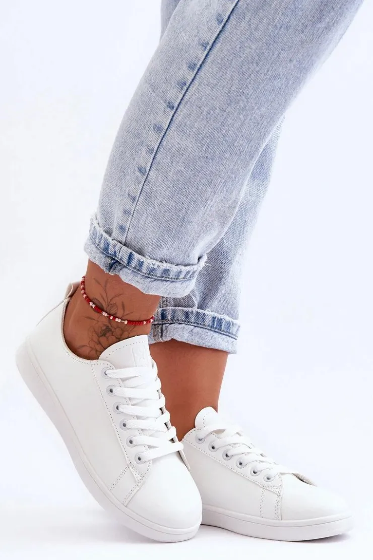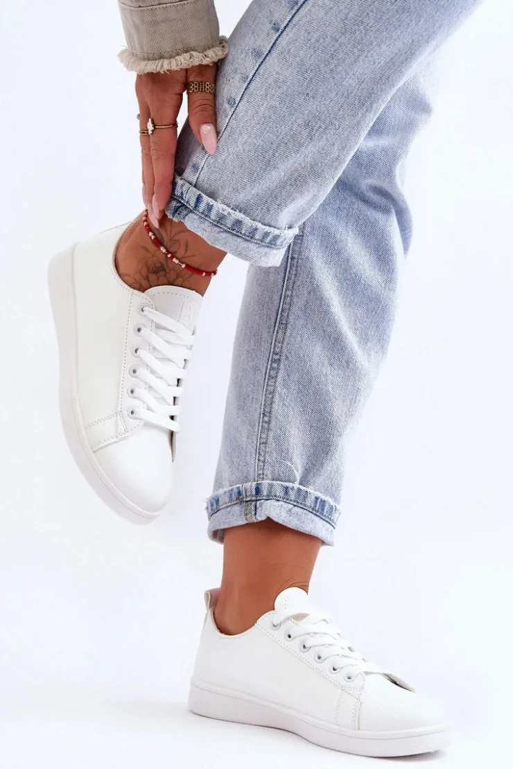 Klasyczne trampki damskie zostały wykonane z eko skóry z cholewką do kostki. Buty posiadają delikatną platformę. Ten ponadczasowy model powinien znaleźć się w Twojej szafie! Nosek jest zaokrąglony. Materiałowa wkładka zapewni komfort podczas użytkowania. Model ten jest klasycznie sznurowany. Przy wyborze rozmiaru prosimy sugerować się tabelą rozmiarów.