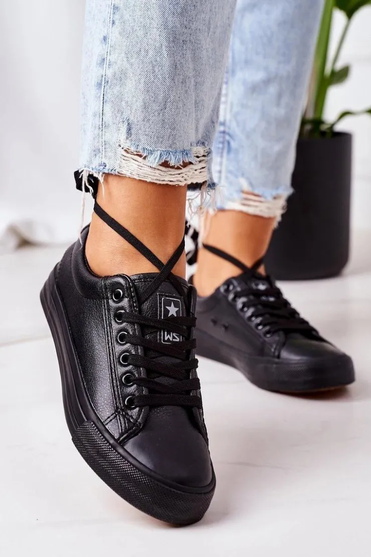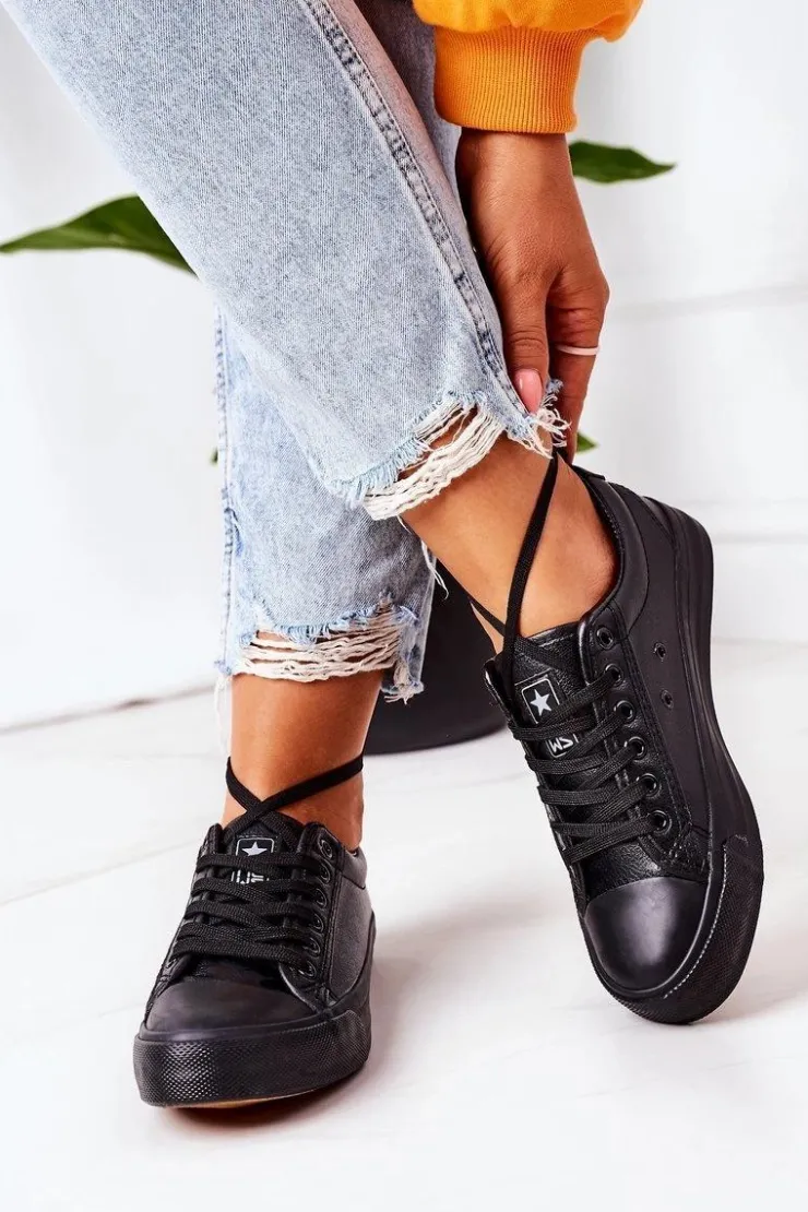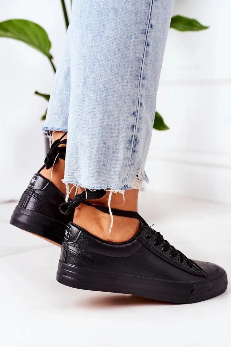 Damskie trampki wykonane ze skóry ekologicznej. Klasyczna forma pasuje do wielu stylizacji. Buty dobrze dopasowują się do kształtu stopy, posiadają miękką, materiałową wkładkę oraz antypoślizgową podeszwę. Przy wyborze rozmiaru prosimy sugerować się tabelą rozmiarów.