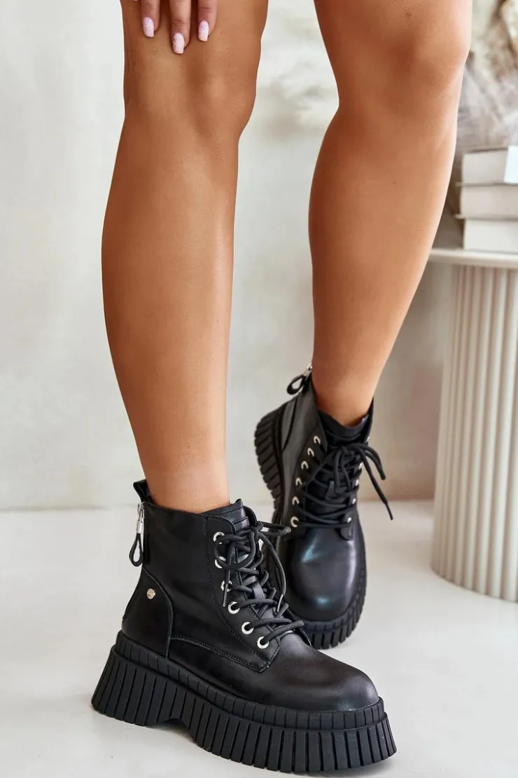 Trapery damskie od marki Goe to połączenie stylu i funkcjonalności. Wykonane z wysokiej jakości skóry naturalnej, gwarantują trwałość i komfort użytkowania. Osadzone na masywnej podeszwie, zapewniają doskonałą przyczepność na różnych nawierzchniach, co czyni je idealnym wyborem na chłodniejsze dni. Wnętrze butów ocieplane jest kocem obuwniczym, co sprawia, że stopy pozostają ciepłe. Trapery zapinane są na zamek, a dodatkowe sznurowanie umożliwia idealne dopasowanie do stopy, co zwiększa komfort noszenia oraz nadaje im modny, casualowy wygląd. Idealne na codzienne spacery czy weekendowe wypady. Przy wyborze rozmiaru prosimy kierować się tabelą rozmiarów