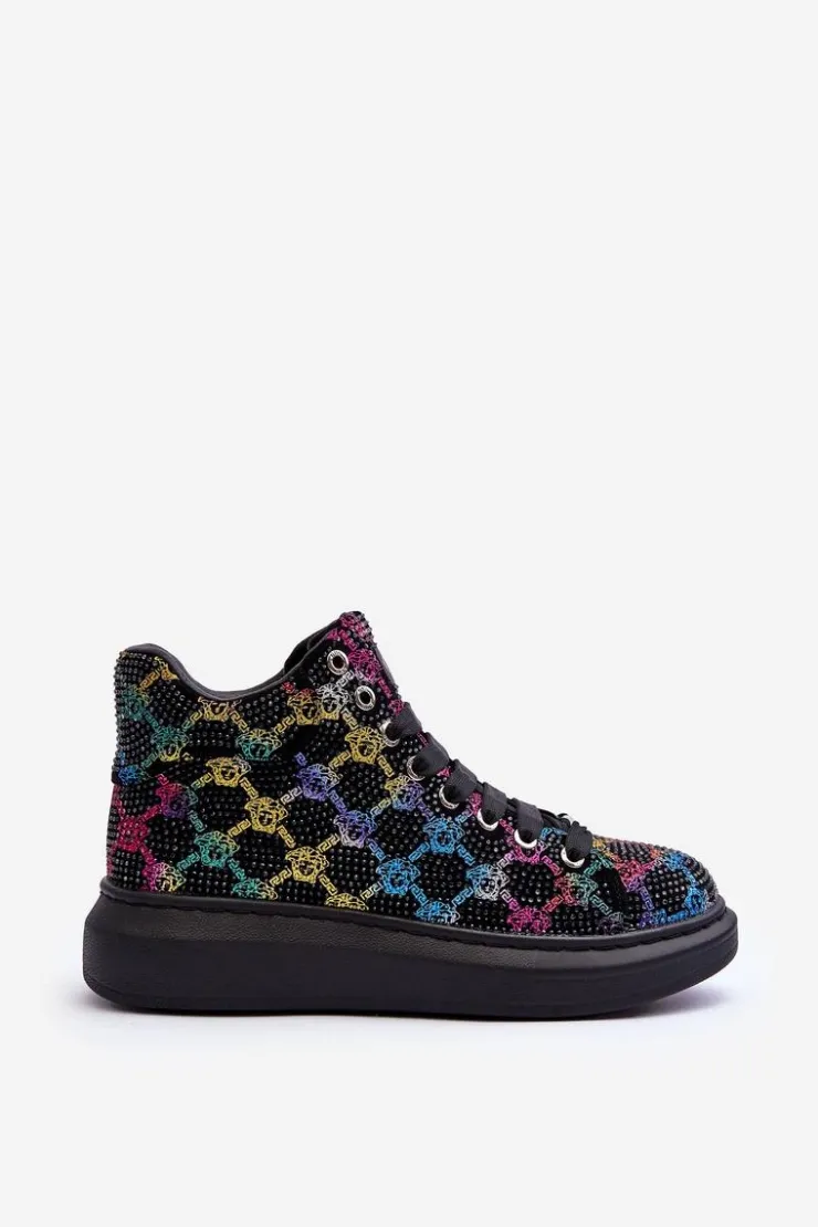 Buty sportowe w modny wzór zostały wykonane z wysokiej jakości materiału tekstylnego z dżetami. Osadzone na masywnej platformie. Miękka, eko skórzana wkładka gwarantuje wygodne użytkowanie. Buty posiadają klasyczne sznurowanie, które pozwoli na odpowiednie dopasowanie obuwia. Świetny model, który powinien znaleźć się w Twojej szafie! Przy wyborze rozmiaru prosimy sugerować się tabelą rozmiarów.
