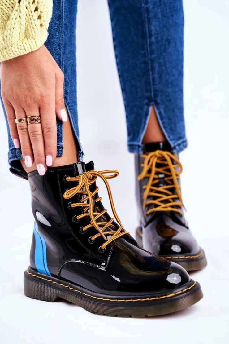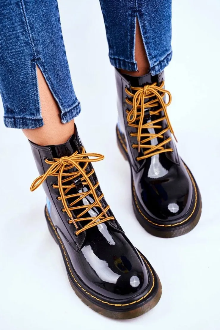 GOE Damskie Trapery|Botki Sznurowane*Damskie Botki Trapery Glany Skórzane Czarne GG2N3056