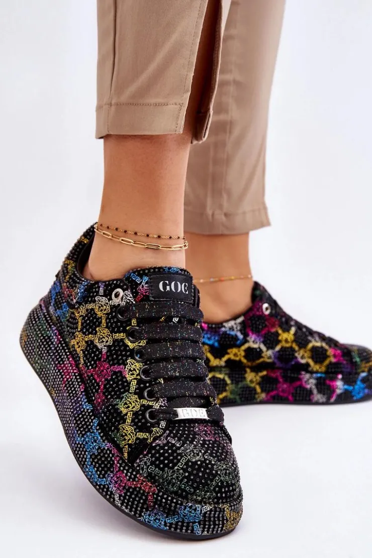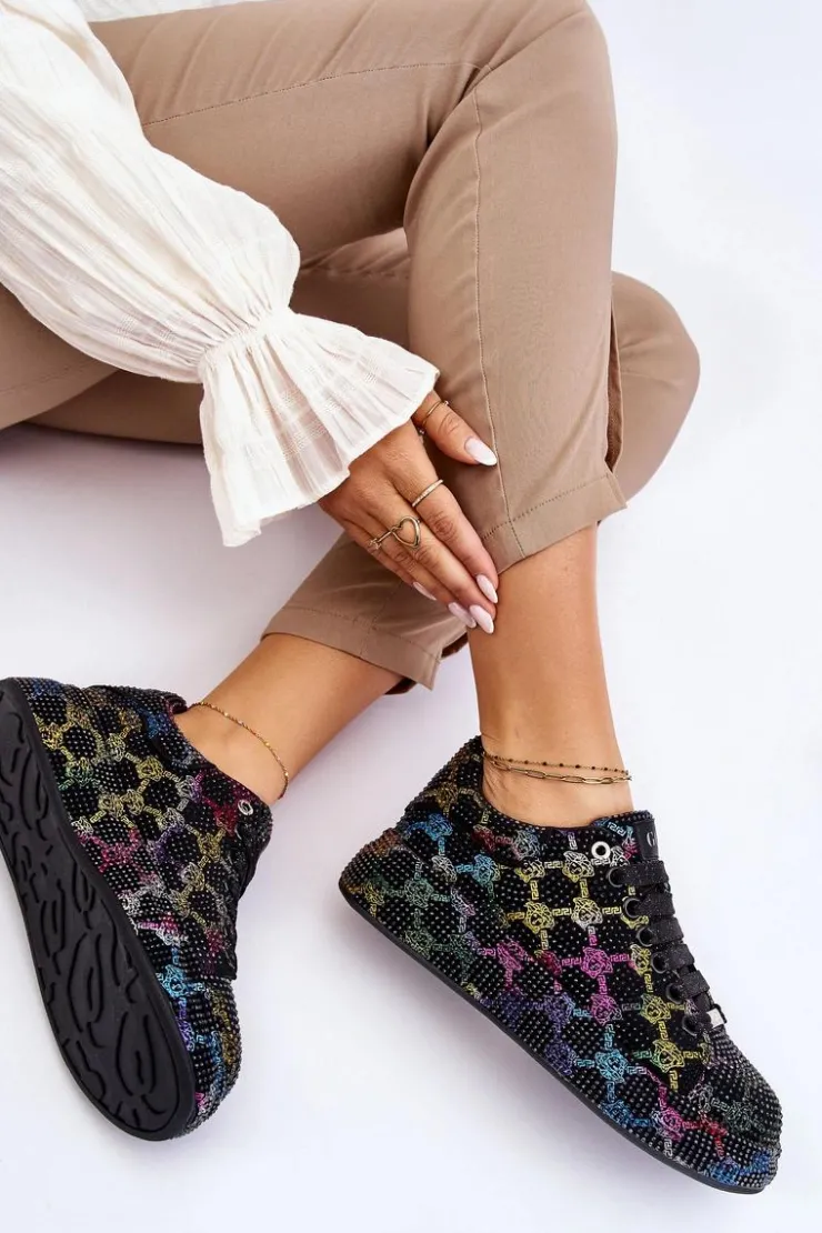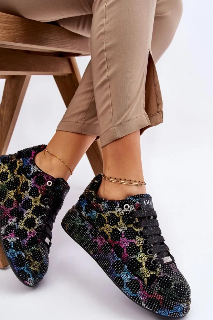 Wyjątkowe buty sportowe wykonane z wysokiej jakości materiału tekstylnego z dżetami. Miękka, eko skórzana wkładka gwarantuje wygodne użytkowanie. Osadzone na masywnej platformie. Buty posiadają klasyczne sznurowanie, które pozwoli na odpowiednie dopasowanie obuwia. Świetny model, który powinien znaleźć się w Twojej szafie! Przy wyborze rozmiaru prosimy sugerować się tabelą rozmiarów.