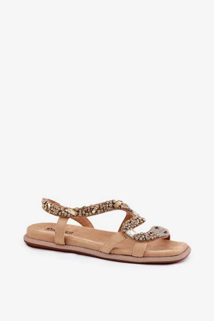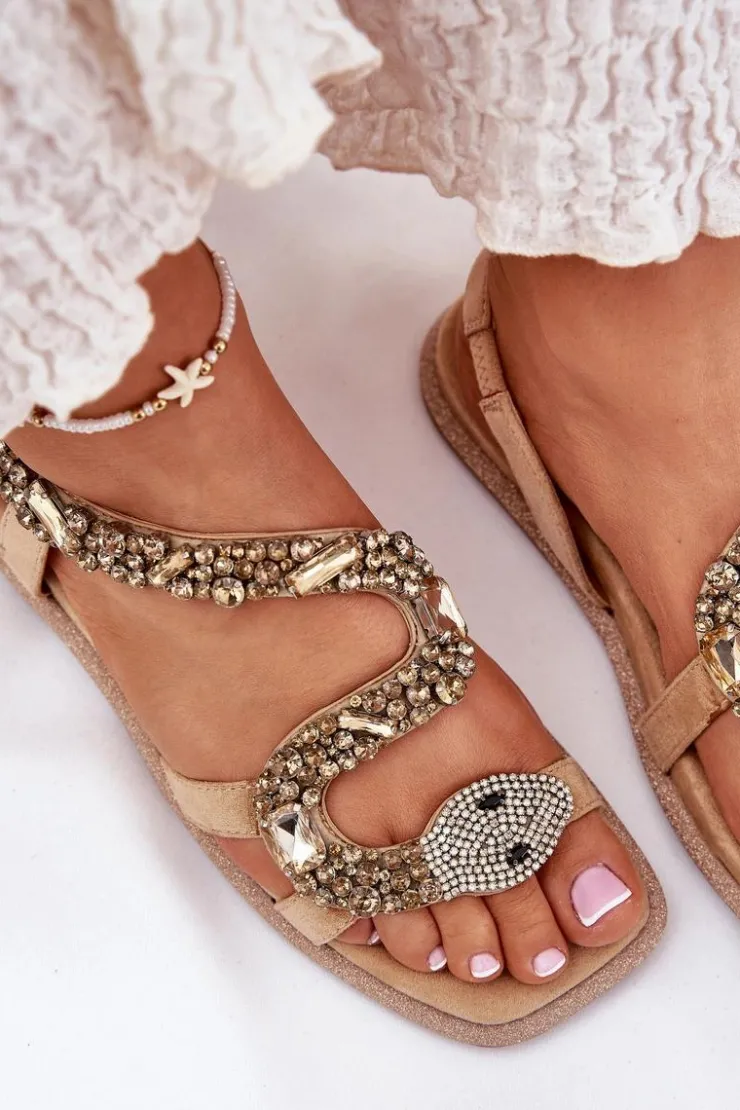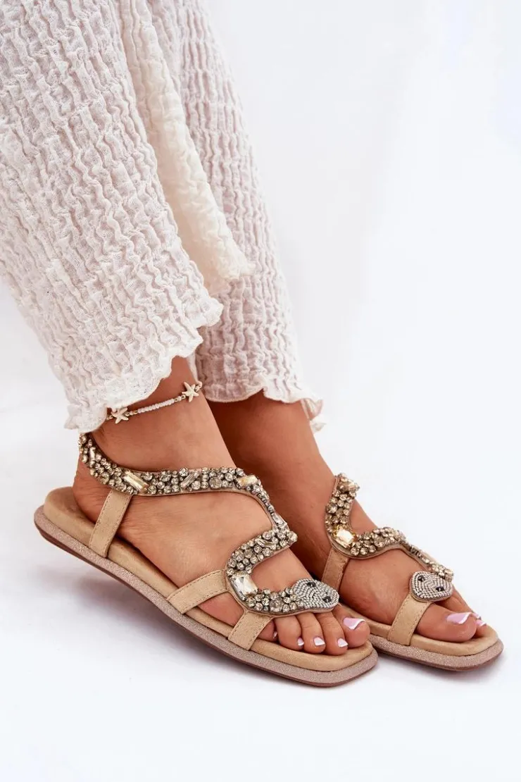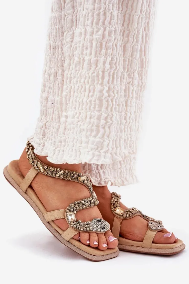 Sandały damskie wykonane z eko skóry to idealny wybór na letnie dni. Płaska podeszwa ozdobiona brokatem dodaje im subtelnego blasku, a unikalne kryształki, które tworzą kształt węża, nadają im wyjątkowego charakteru. Te sandały będą doskonałym akcentem do letnich stylizacji, łącząc elegancję z modnym, oryginalnym wyglądem. Przy wyborze rozmiaru prosimy sugerować się tabelą rozmiarów.