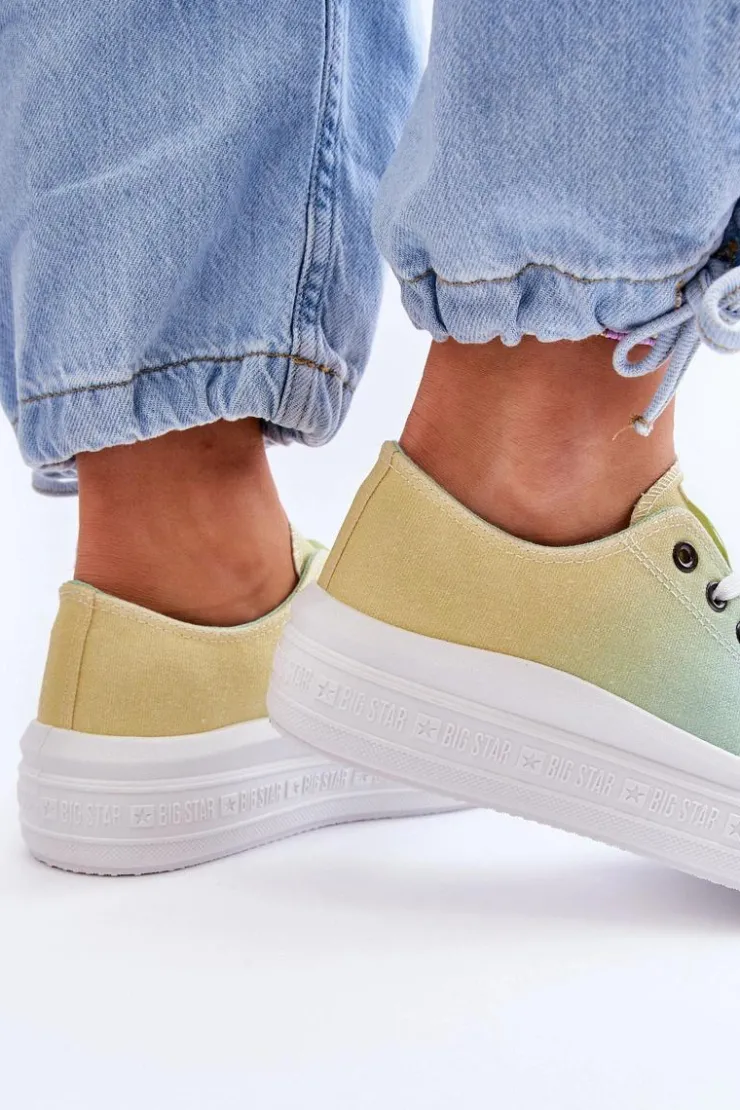 Damskie trampki polskiej marki BIG STAR zostały wykonane z materiału tekstylnego. Posiadają materiałową wkładkę oraz klasyczne sznurowanie. Osadzone na masywnej platformie. Trampki pasują do wielu stylizacji, dlatego koniecznie powinnaś mieć ten model w swojej garderobie! Z pewnością wykorzystasz je w sezonie wiosenno-letnim! Przy wyborze rozmiaru prosimy sugerować się tabelą rozmiarów.