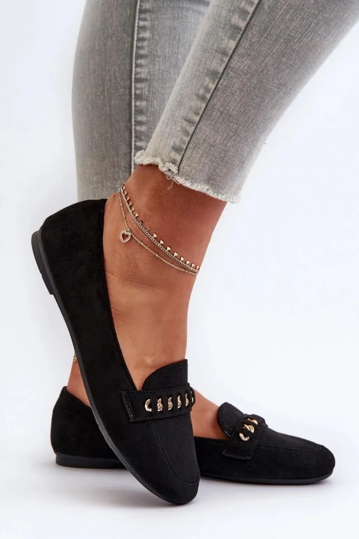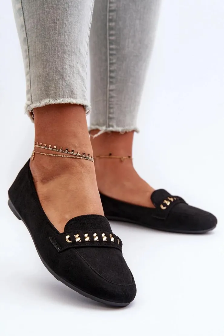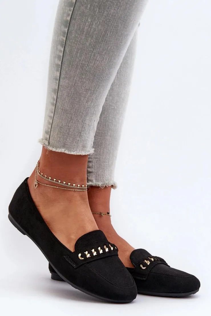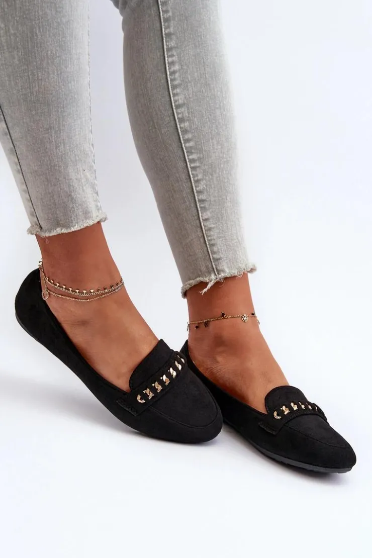 Hot Boto Błyszczące Mokasyny Damskie Z Łańcuchem Czarne Aredilla