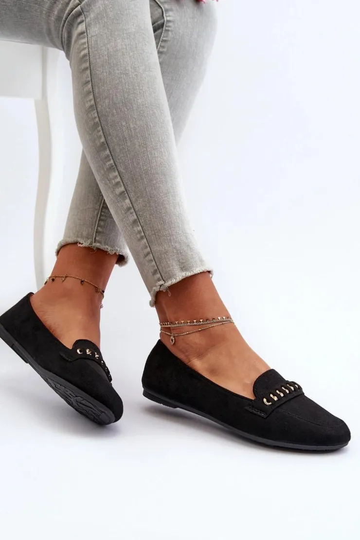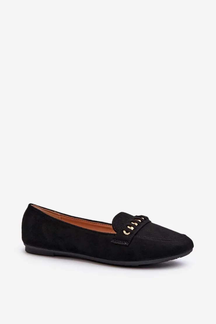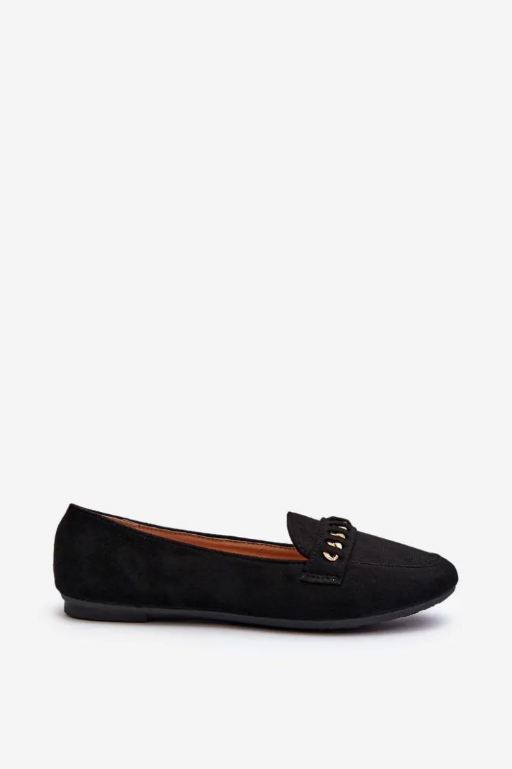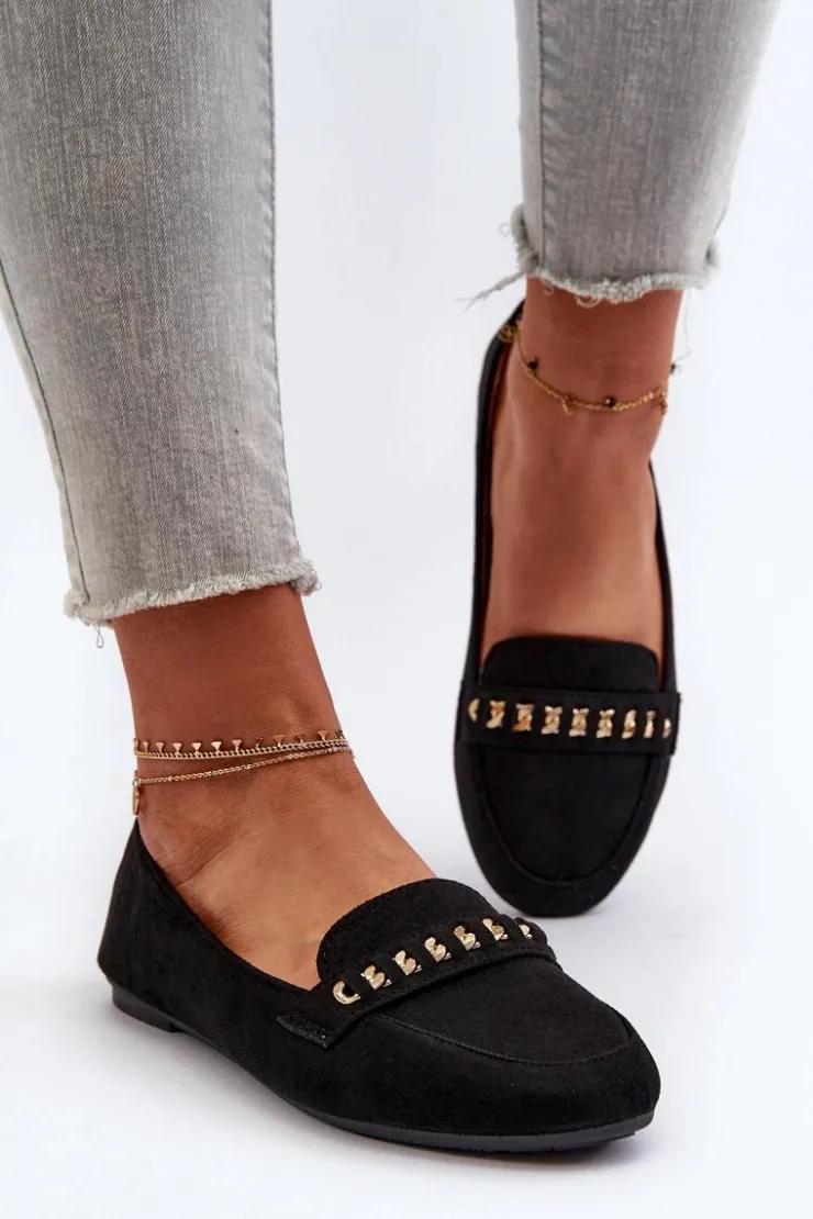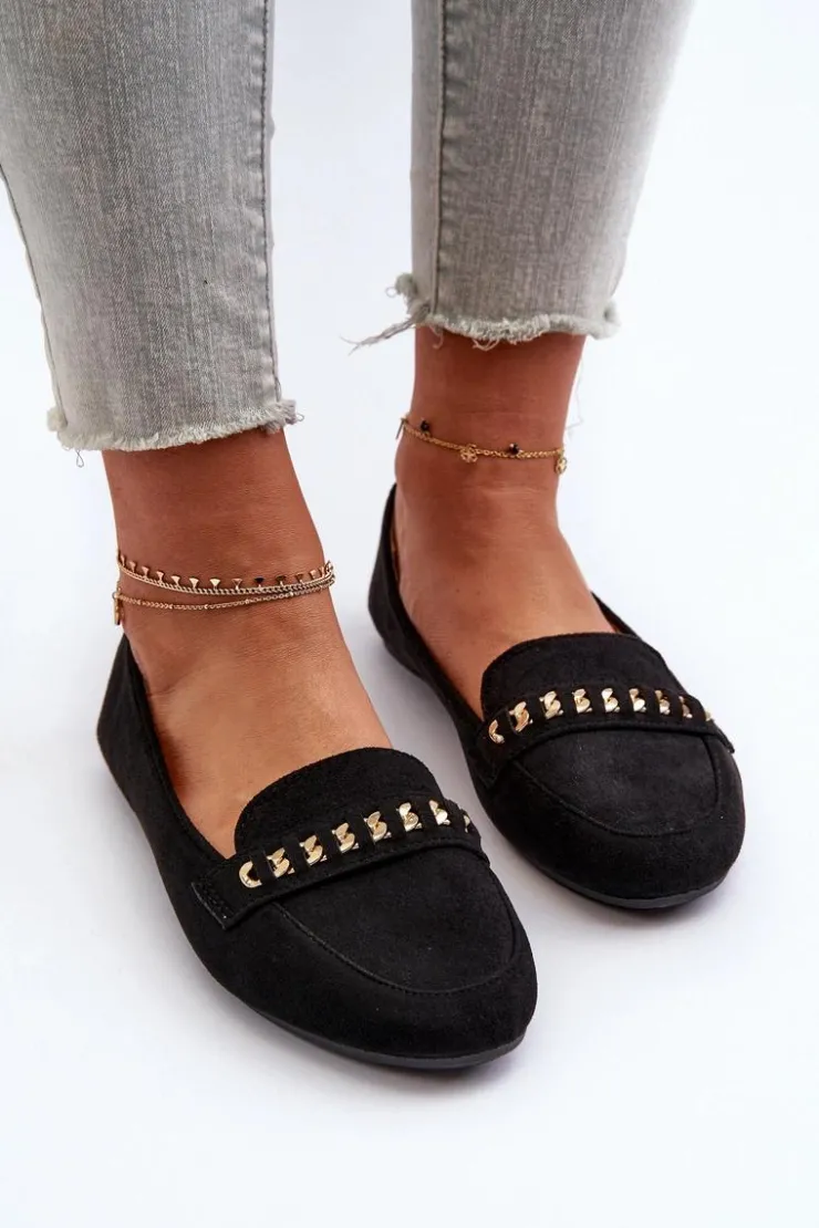 Hot Boto Błyszczące Mokasyny Damskie Z Łańcuchem Czarne Aredilla