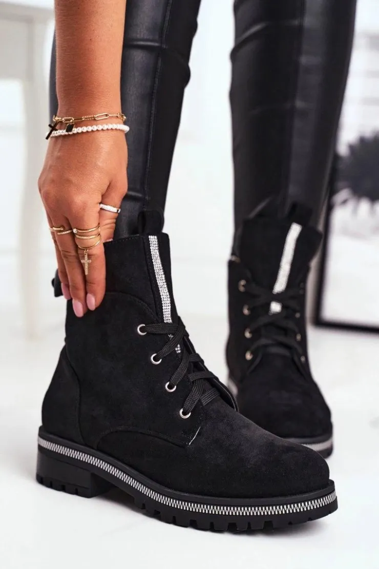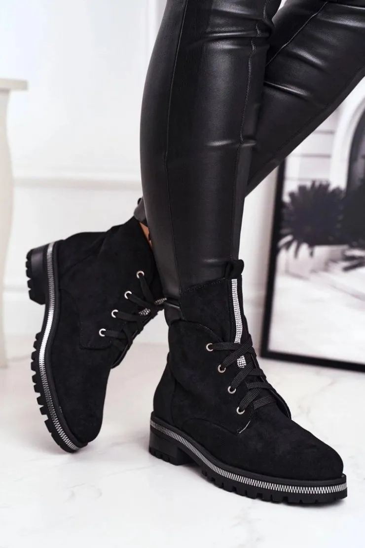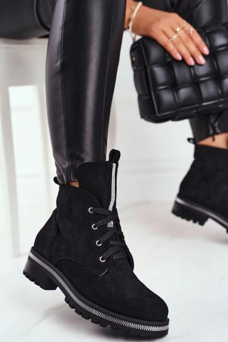 Hot Boto Botki Damskie Eko Zamsz Czarne Hundret Percent