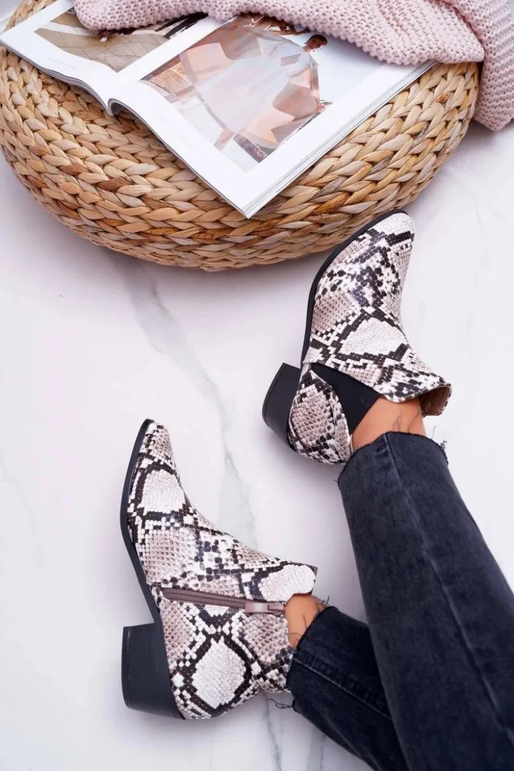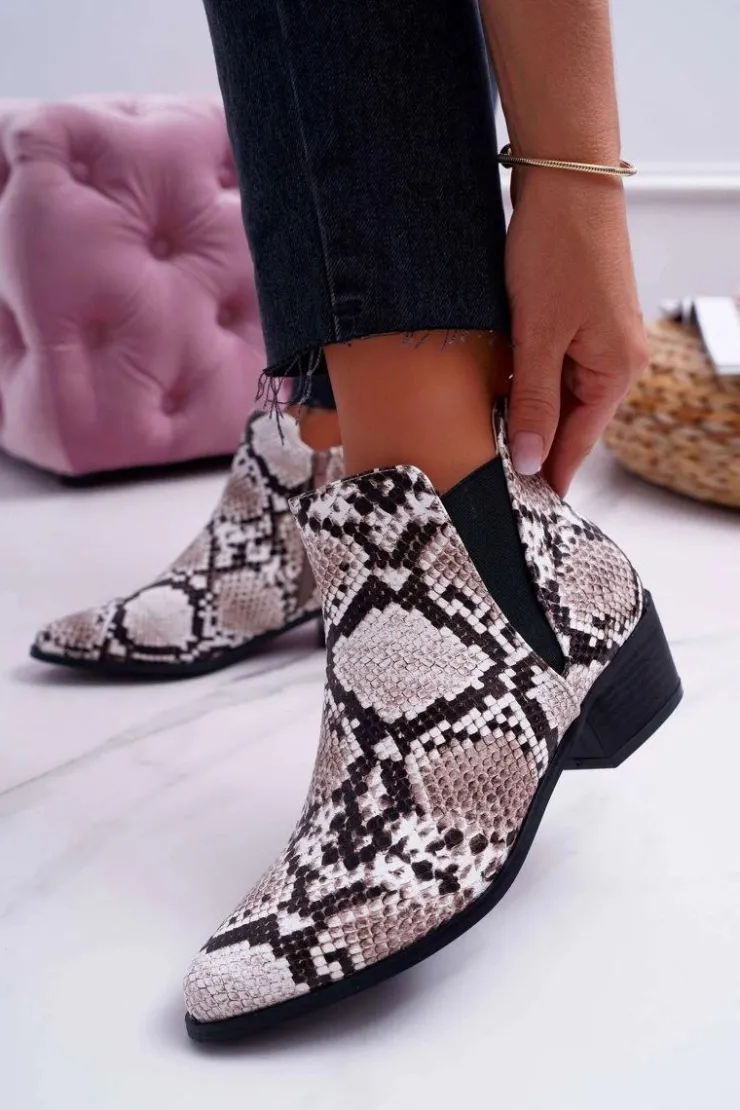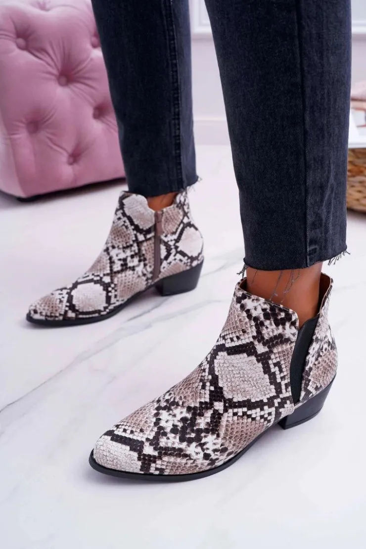 Hot Boto Damskie Botki Płaskie Skóra Węża Murino