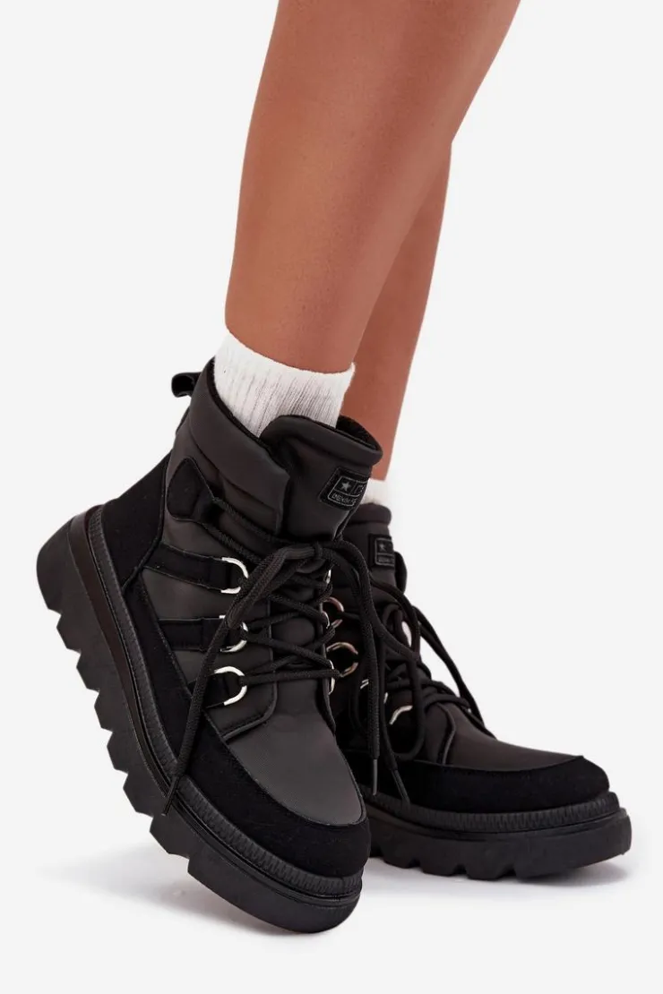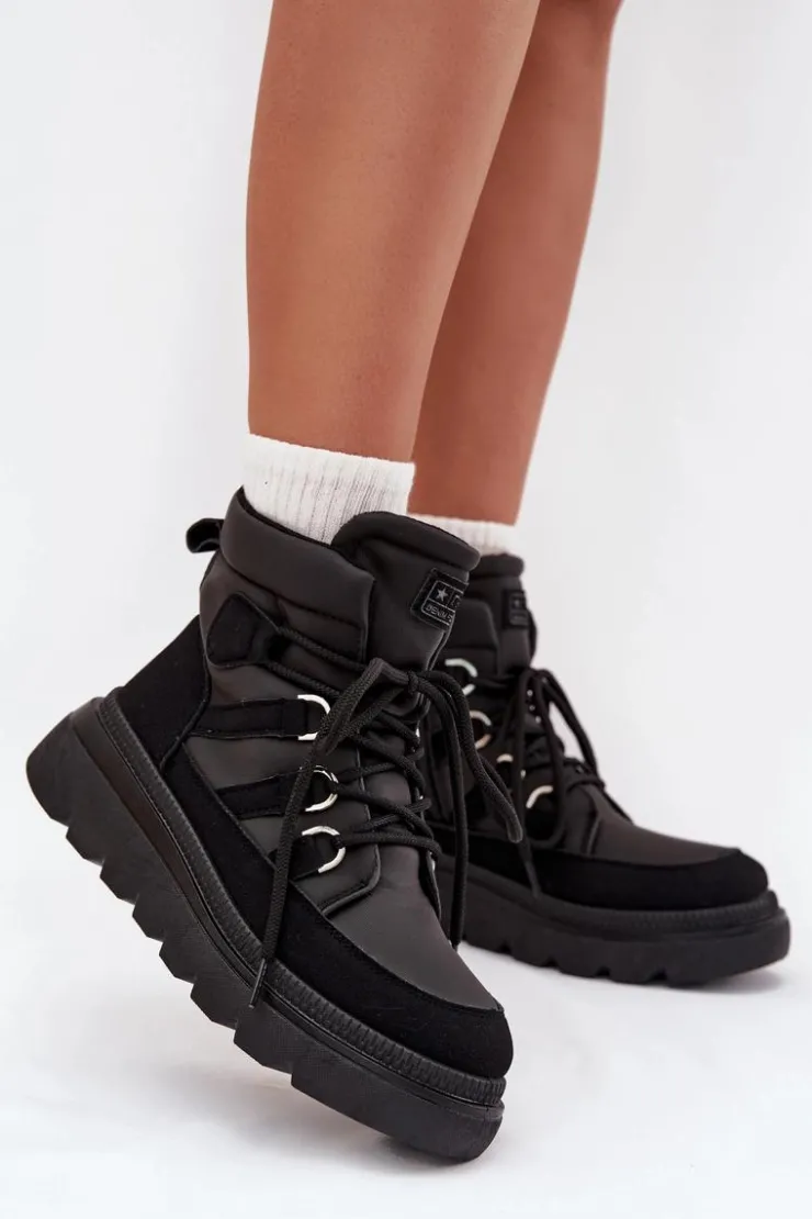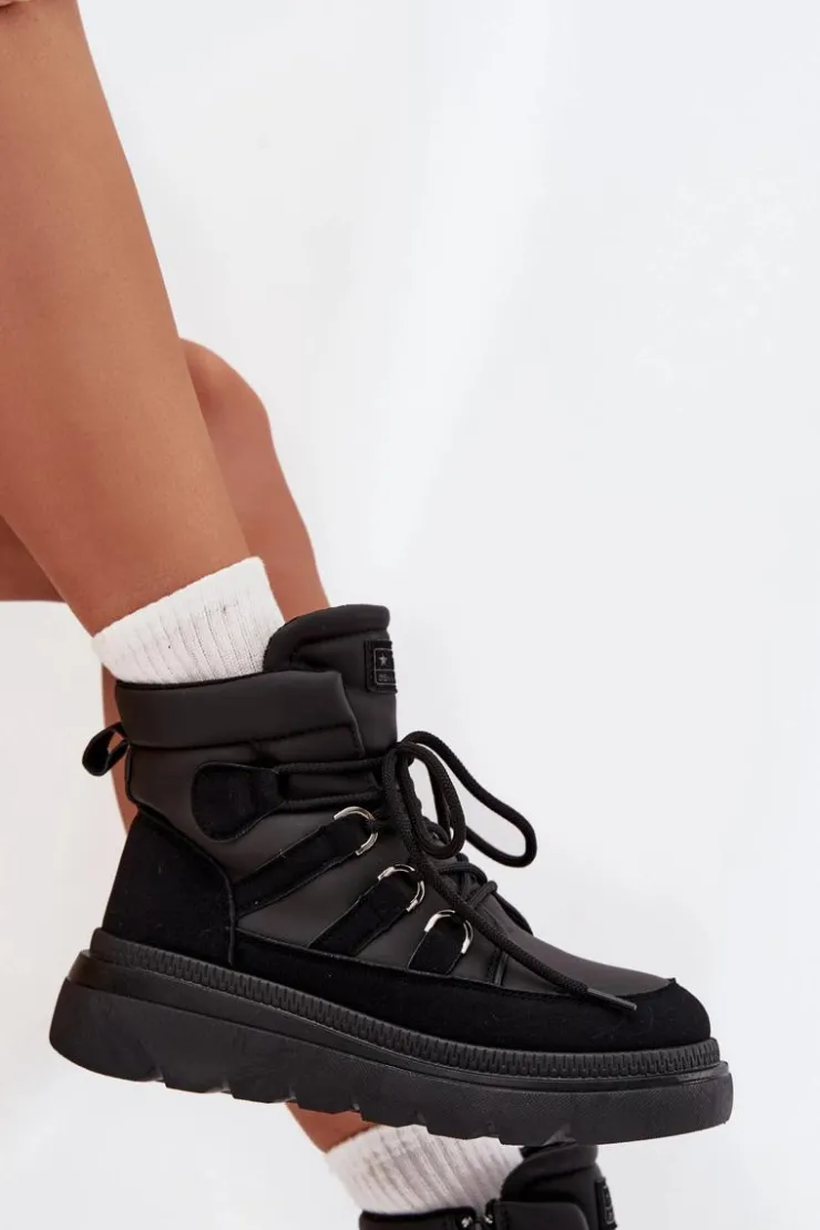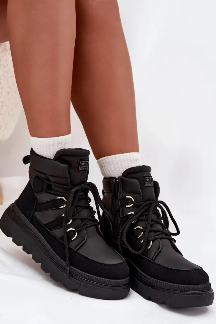 Botki damskie ocieplane to doskonały wybór na zimowe dni. Osadzone na platformie, zapewniają komfort i stabilność podczas chodzenia. Model ten wyposażony jest w sznurowanie oraz dodatkowe zapięcie na zamek, co ułatwia zakładanie i dopasowanie do stopy. Ocieplenie wewnątrz buta gwarantuje ciepło nawet w mroźne dni. Stylowy fason sprawia, że te botki będą świetnym uzupełnieniem każdej zimowej stylizacji. Przy wyborze rozmiaru prosimy sugerować się tabelą rozmiarów.