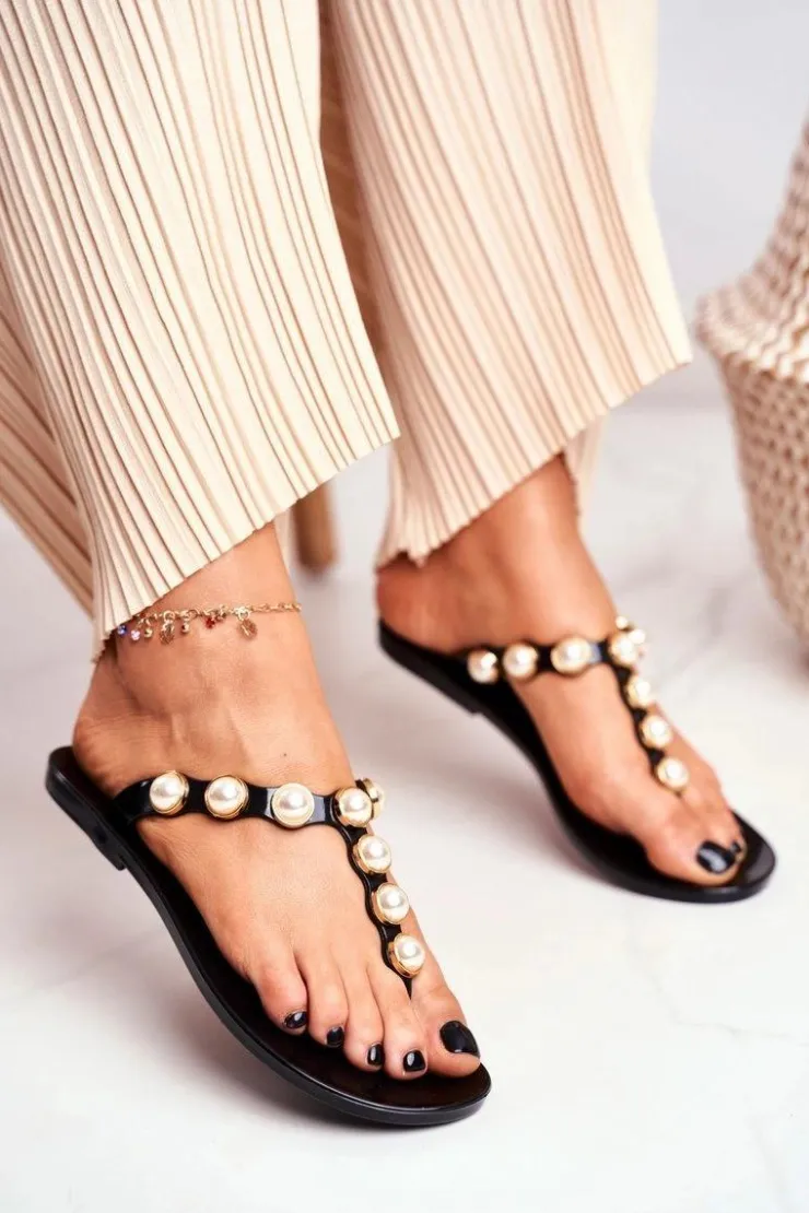 Hot Boto Damskie Gumowe Klapki Czarne Japonki Perełki Edith