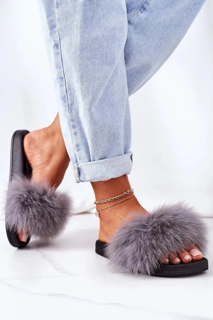 Wygodne klapki z naturalnym futerkiem. Gumowa, delikatnie profilowana podeszwa oraz miękka cholewka zapewnią komfort. Klapki dostępne są w wielu pięknych kolorach.Przy wyborze rozmiaru prosimy sugerować się tabelą rozmiarów.