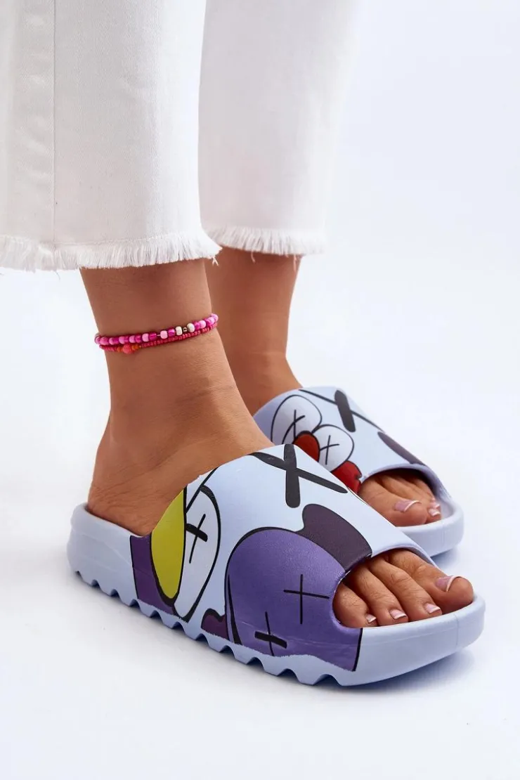 Świetne klapki w kreskówkowy print! Klapki, które możesz używać także zamiast papci! Wykonane z gumowego tworzywa. Buty posiadają delikatnie profilowaną wkładkę. Grubsza podeszwa chroni przed nierównym podłożem. Ciekawy model, którym zaskoczysz wszystkich! Musisz go mieć! Przy wyborze rozmiaru prosimy sugerować się tabelą rozmiarów.
